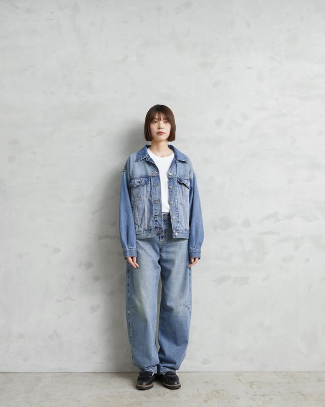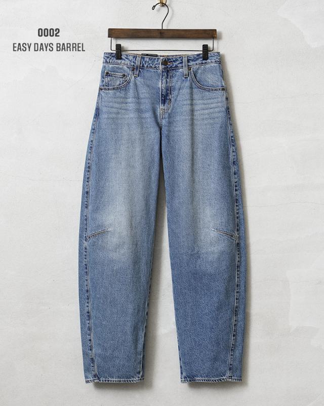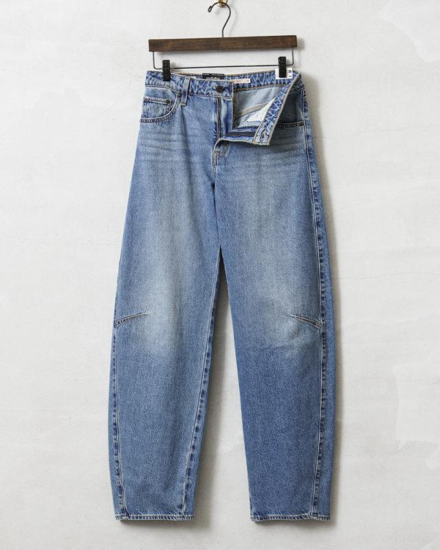 今っぽさとリラックス感を兼ね備えた、ゆるっとカーブを描くバギーダッドバレルシルエットのデニムパンツ。着脱しやすいフロントジッパーフライで、丈夫な綿の特徴は残しつつ肌馴染みの良い柔らかさのある生地。ミッドライズで腰まわりはすっきり、程よいゆとりが脚のラインをきれいに見せてくれる、ラフなのにこなれて見える万能デニムは今や定番のスタイルになっています。太ももゆったり〜裾に向かってややテーパードするバレル(樽)シルエットで締め付け感はなく、筋肉質な方やお尻や太ももまわりが少し気になる方でも動きやすくストレスフリーに着用が可能。