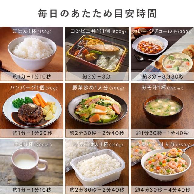 食品の種類、温度により異なりますので様子を見ながら加熱してください。