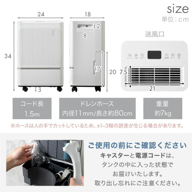 コンパクト 小型 コンプレッサー式 除湿機 除湿器 タンク 1.7L 衣類乾燥 衣類乾燥除湿器 衣類乾燥除湿機 衣類除湿機 部屋干し 室内干し 湿気 カビ対策 大容量 連続排水 静か 排水ホース