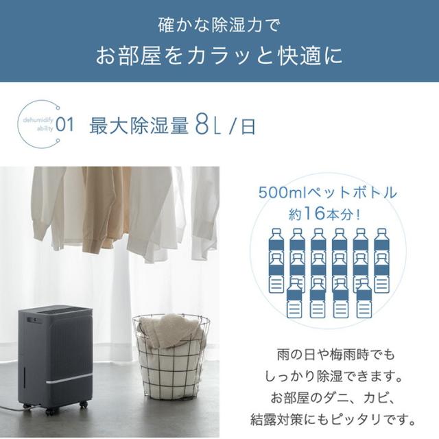 コンパクト コンプレッサー式 除湿機 8L/日 20畳 除湿 衣類乾燥 衣類乾燥付き 小型 コンプレッサータンク 1.7L 除湿器 除湿乾燥機 衣類乾燥機 乾燥機 衣類乾燥除湿機 省エネ 空気清浄 連続排水 強力 静音 湿気対策 室内干し 梅雨