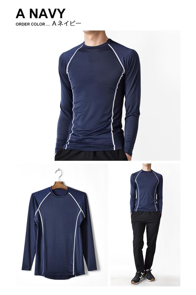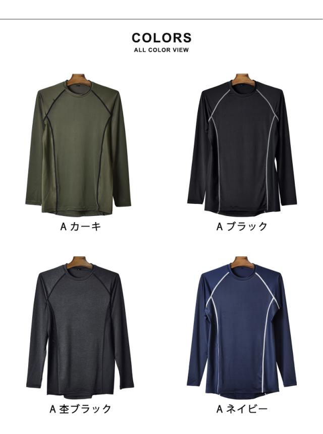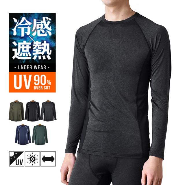 長袖Tシャツ メンズ 接触冷感 UVカット ストレッチ ロンT 涼感 無地 インナー 春夏【ゆうパケット送料無料】【2-W4C】