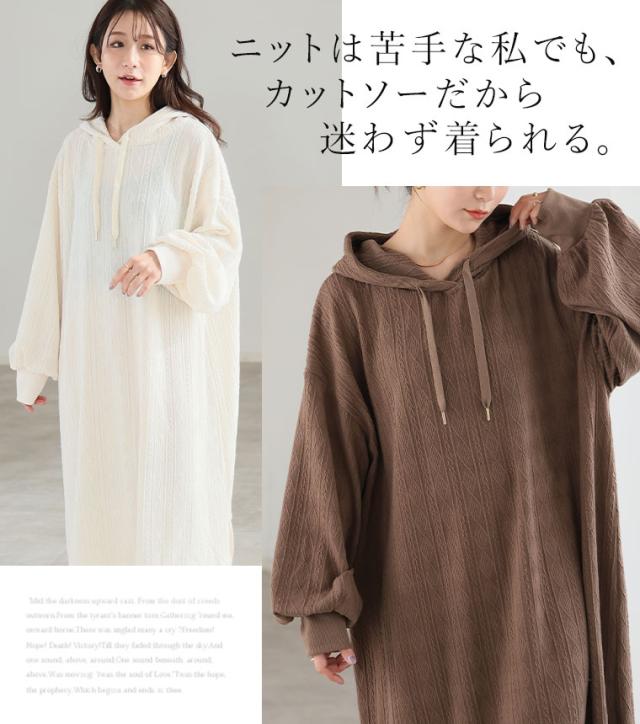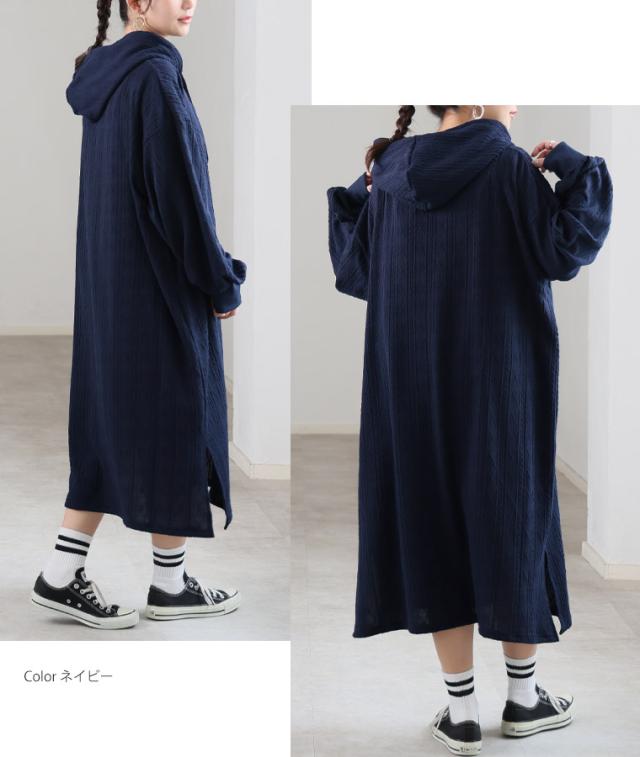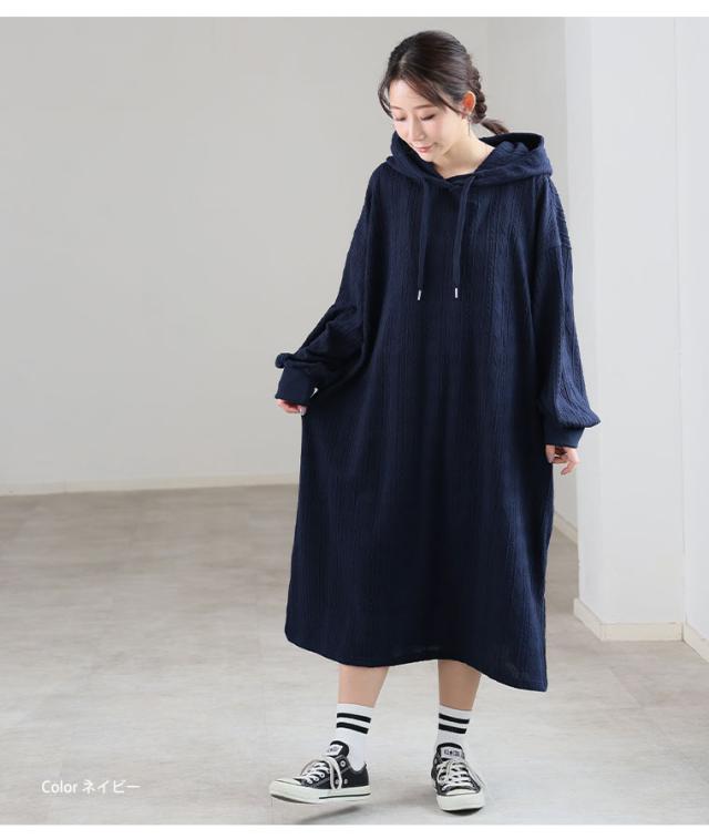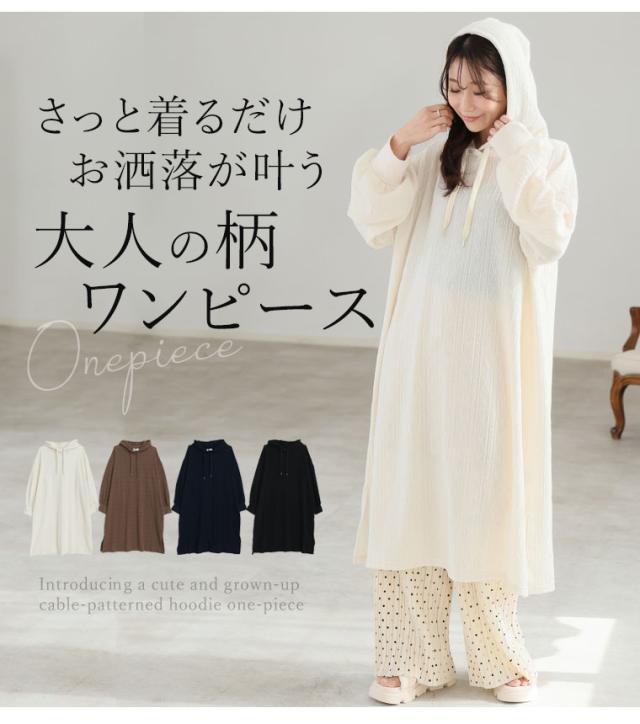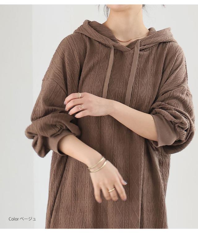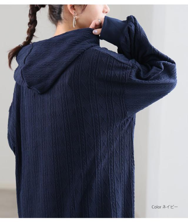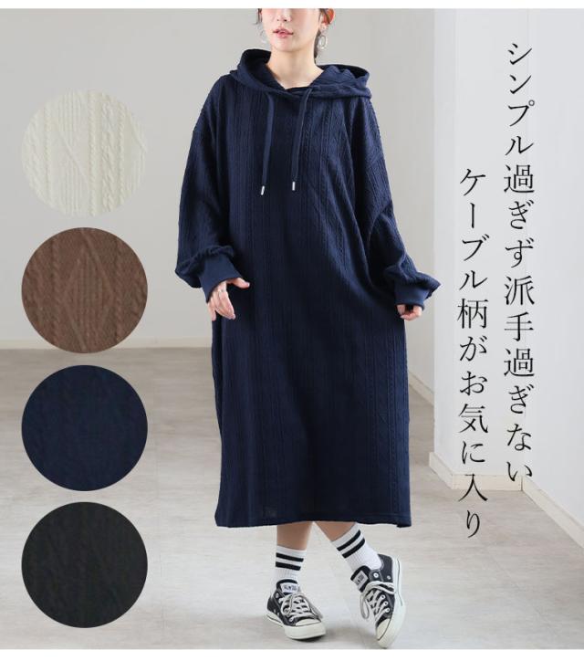 大人も着やすい、スッキリ魅せ ケーブル柄 パーカー ワンピース