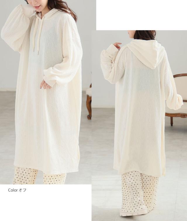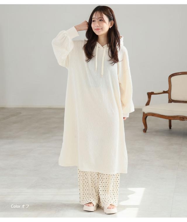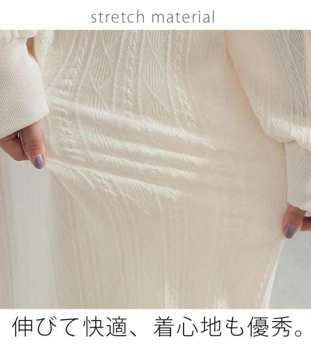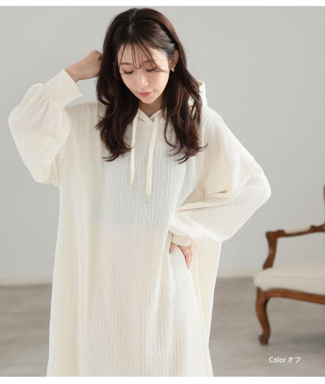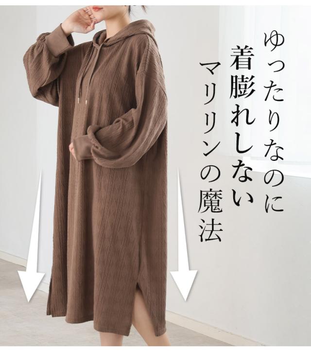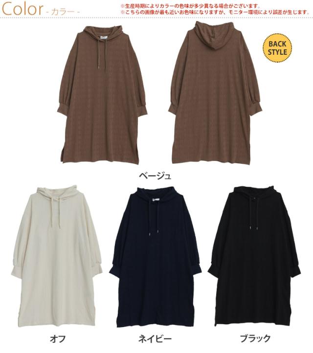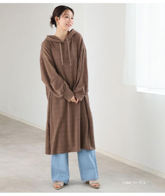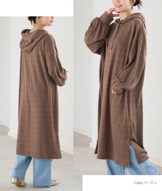 大人も着やすい、スッキリ魅せ ケーブル柄 パーカー ワンピース