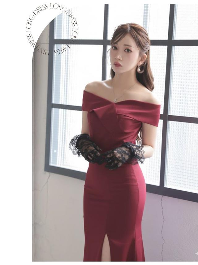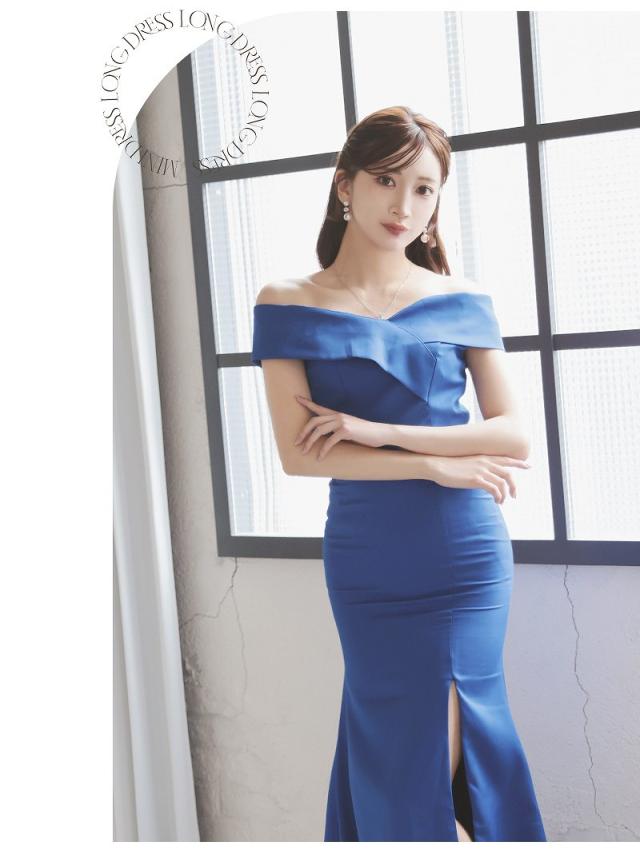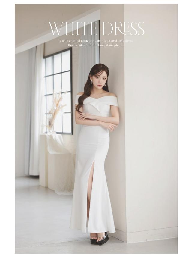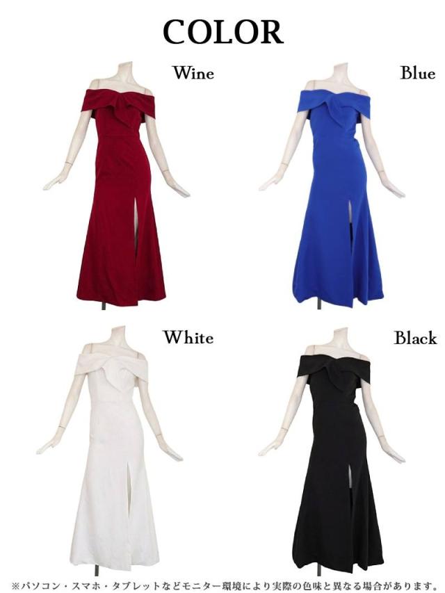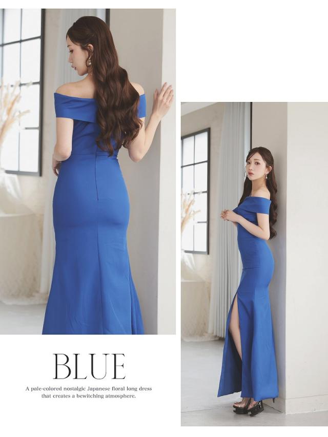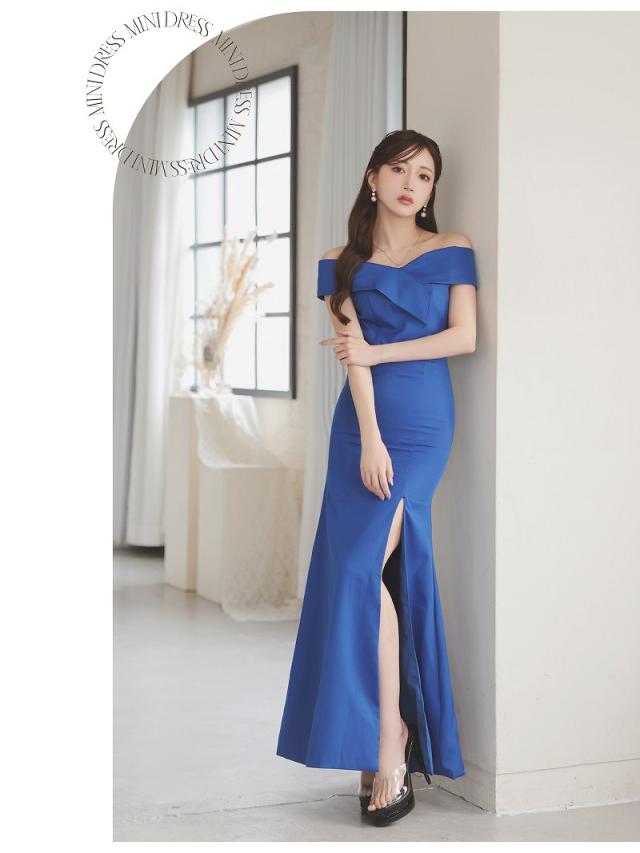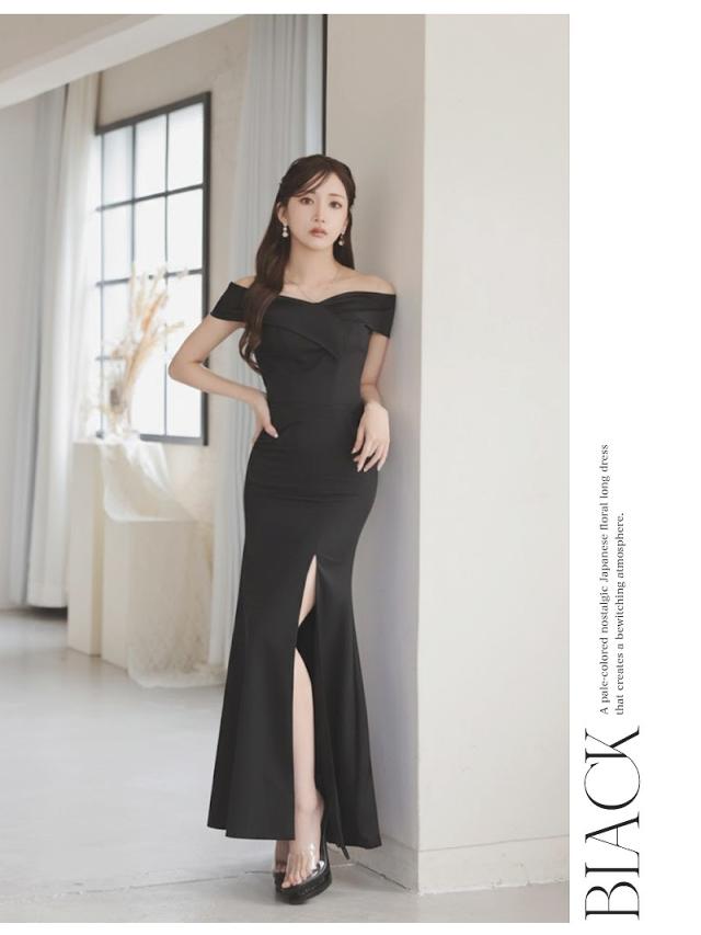 一部予約販売 ロングドレス Ryuyu オフショル 美デコルテ 小顔効果 大胆スリット フレアロングドレス キャバ ドレス キ