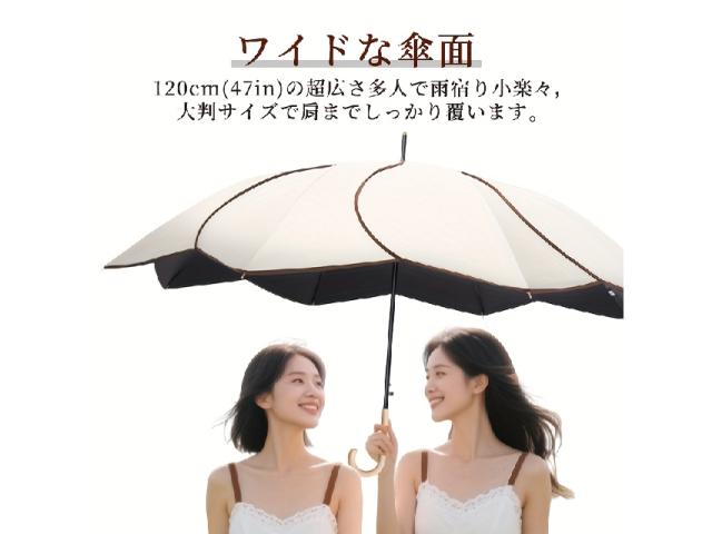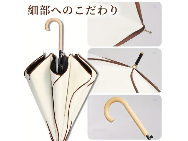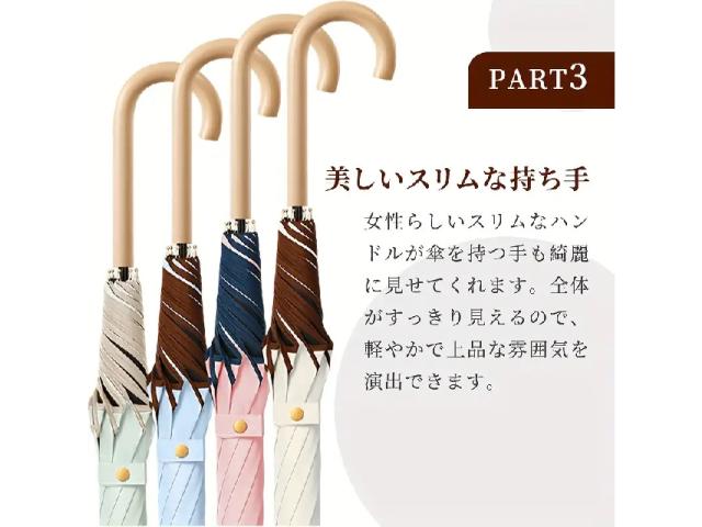 傘 日傘 雨傘 湾曲木製グリップ 軽量 晴雨兼用 旅行用 高品質 エレガント ベージュ ブラック ブルー グレー ピンク 男女兼用 日常 フォーマル アウトドア 丁寧仕上げ 紫外線対策 梅雨対策 プレゼント
