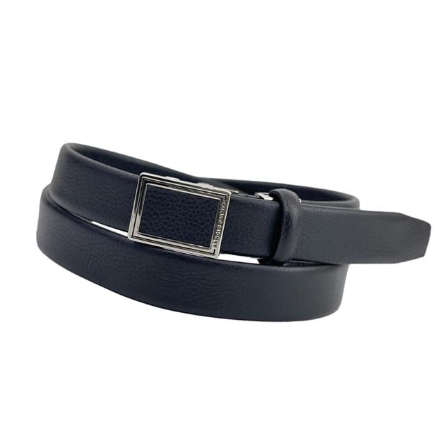 帯全体にシボの型押しを施した本革を使用しており、高級感のあるビジネスベルト。