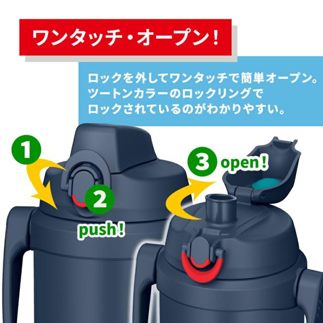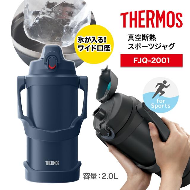 2L THERMOS サーモス 真空断熱スポーツジャグ FJQ-2001 2リットル 保冷専用 サーモスジャグ スポーツ 水筒 保冷 大容量 ワンタッチオープン 直飲み ステンレスボトル スポーツドリンク対応 ハンドル付き アイス 部活 アウトドア用 通勤 通学 子供