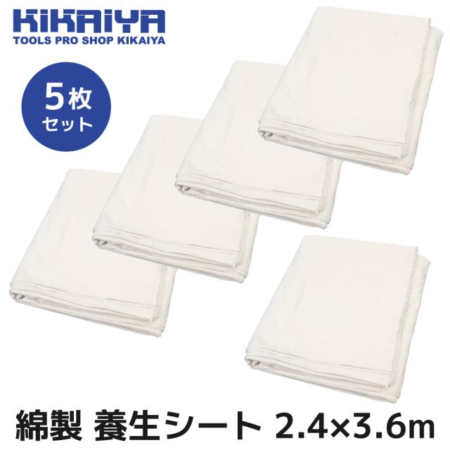 塗装養生シート 2.4×3.6m 5枚セット 綿100% 布製 養生 塗装シート ネタ場 長方形 DIY KIKAIYA