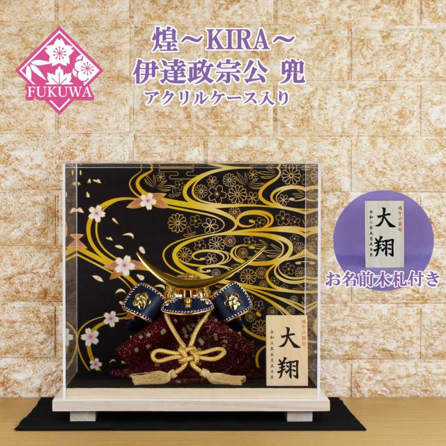兜飾り コンパクト おしゃれ モダン ケース入り (煌〜KIRA〜伊達政宗兜 ブラック ケース入り お名前木札付きYR403KS-4)端午の節句 初節句 5月人形
