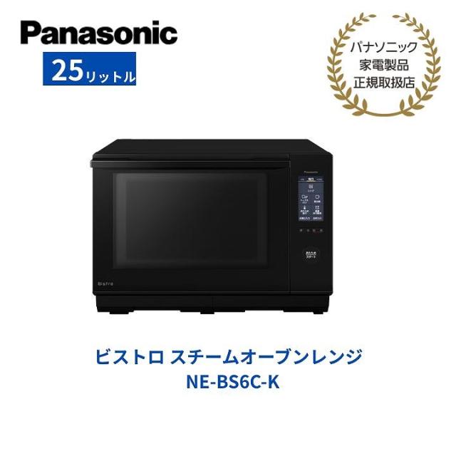 【パナソニック 正規取扱店】ビストロ スチームオーブンレンジ 25L ブラック 電子レンジ Bistro フラット タッチ操作 赤外線 あたため 両面焼き 焼く 煮る 蒸す 揚げる グリル皿 お手入れらくらく 解凍 NE-BS6C-K