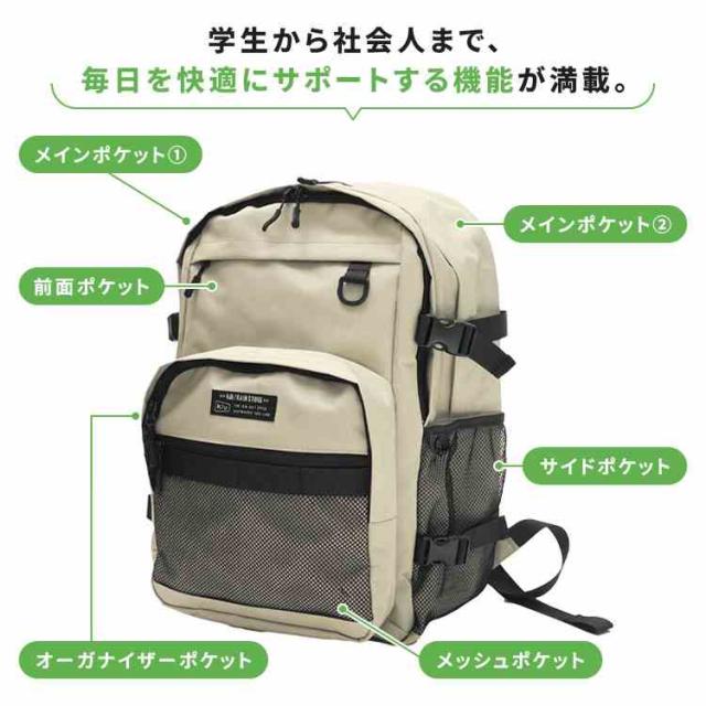 エブリディ バックパック KiU キウ K525 レディース メンズ 撥水 防水 大容量 B4 34L 15インチ PC収納 ポケット 多い 軽量 大きめ リュックサック デイパック チェストベルト付き デイジーチェーン おしゃれ 黒 ブラック ベージュ 通勤 通学 高校生 一泊 旅行 アウトドア
