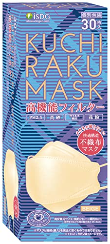 [医食同源ドットコム] iSDG KUCHIRAKU MASK (クチラクマスク) 個包装 ベージュ 30枚入