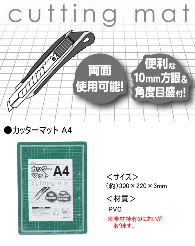 M&M カッターマット A4 約300×220mm 1枚 作業工具 工作 カッターマット マット 裁断 切断 両面使用可能 10mm方眼 角度目盛付 PVC グリーン 文房具 事務用品 高儀 TAKAGI