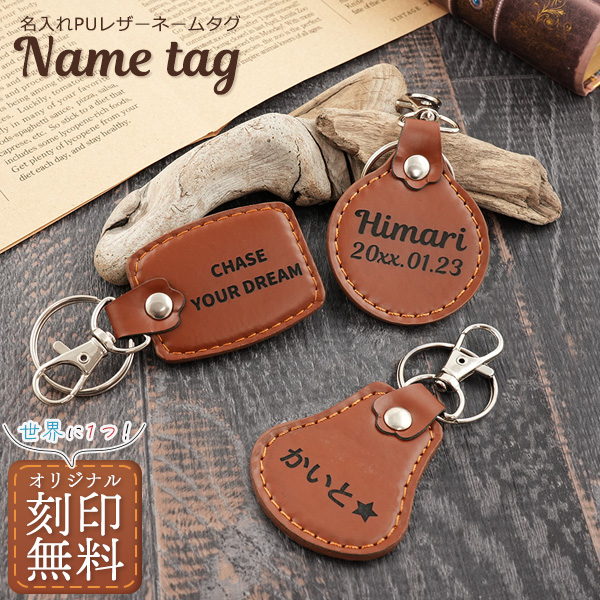PUレザーネームタグ 名前 キーホルダー 刻印無料 ネームプレート ナスカン 二重リング付き 名札 シンプル おしゃれ 名入れ無料 鞄プレート バッグプレート 鍵 キーホルダー 目印 贈物 贈答用 ギフト 記念品 プレゼント ノベルティ 粗品 ゴルフ大会 ゴルフコンペ 名入れギフト