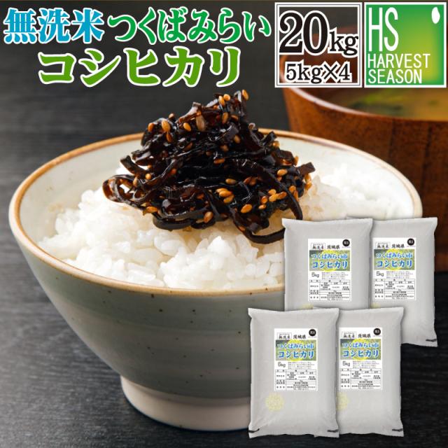 令和7年産 無洗米 茨城県つくばみらい市産 コシヒカリ 20kg(5kg×4袋) 送料無料 [翌日配送] [北海道沖縄へのお届けは別途送料760円]