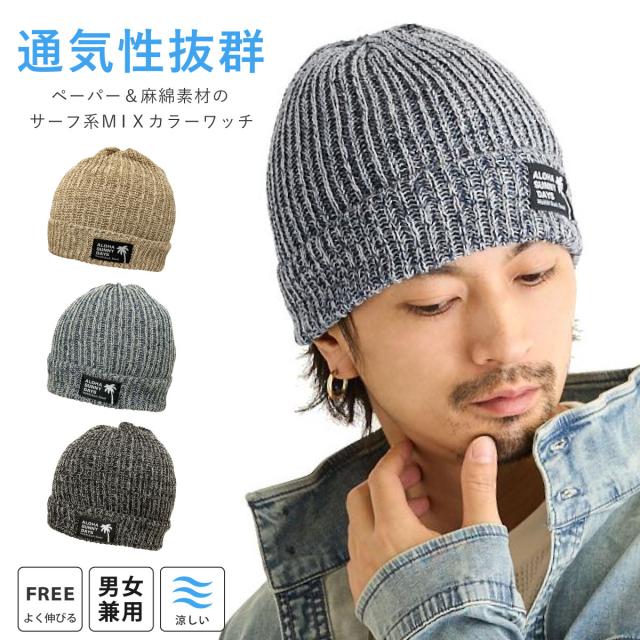 サマー ニット帽 綿 麻 ペーパー素材 通気性抜群 ハワイアン 涼しい ニットワッチ フリー MIXカラー knit-1741 Kahiko カヒコ 正規品 メンズ 帽子 レディース 春夏 伸びる 日よけ 熱中症対策 男女兼用 ワッペン ニットキャップ メール便送料無料