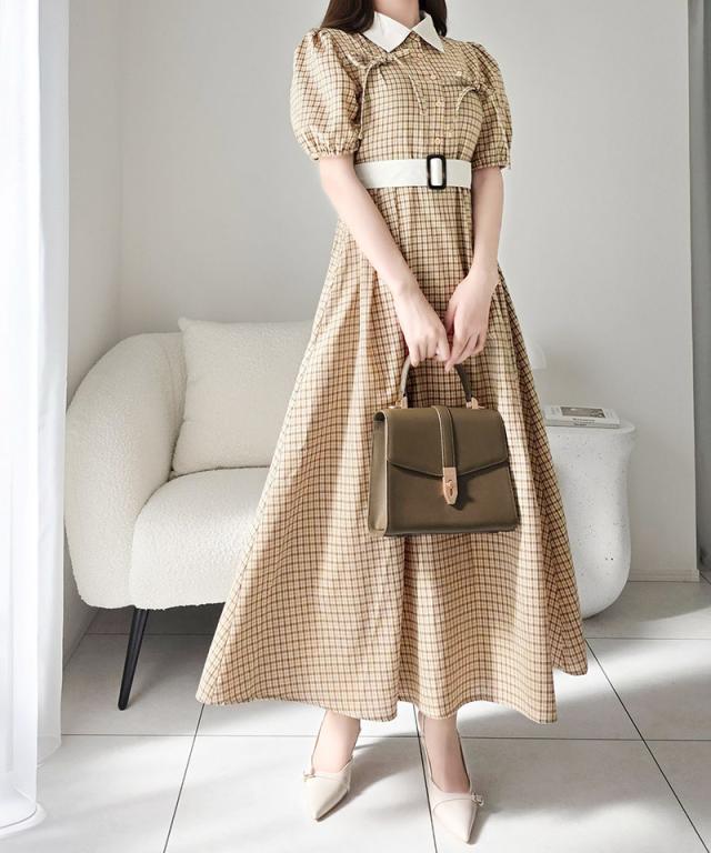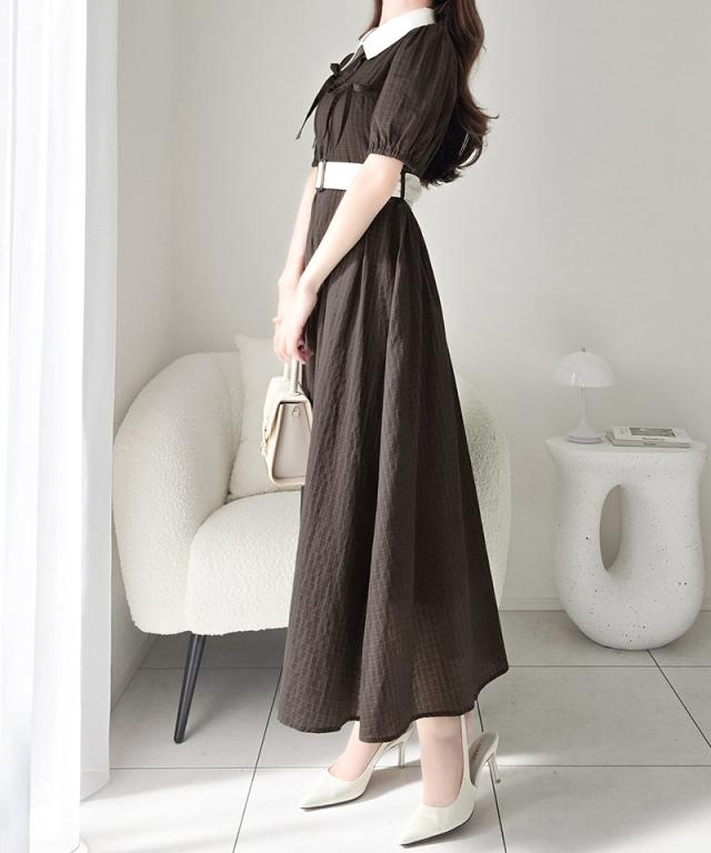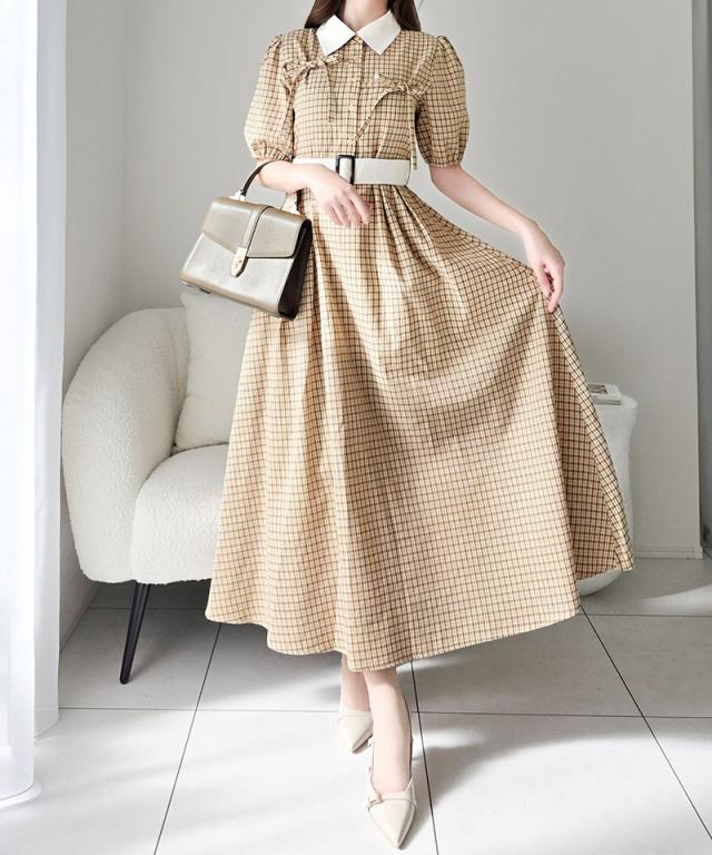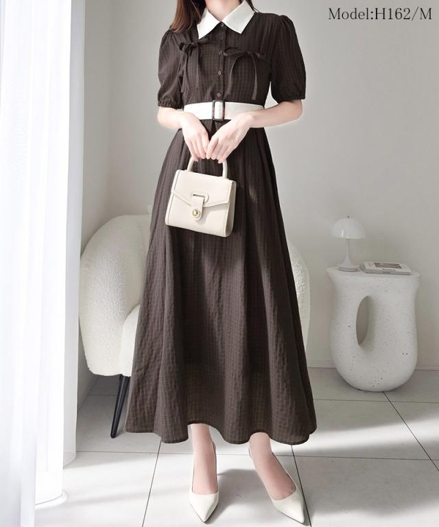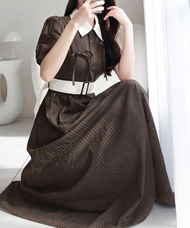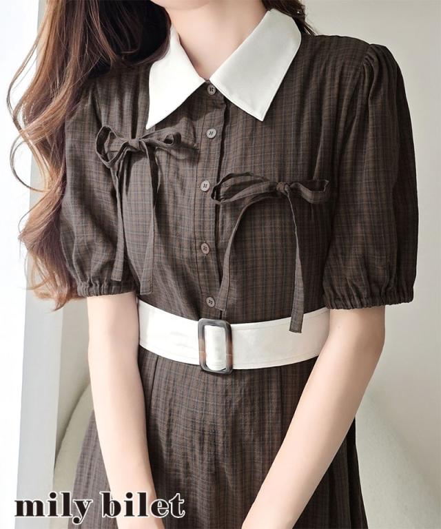クラシカルエルフ夏新作 mily bilet ワンピース レディース ロングワンピース 共布ベルト付き レトロ 甘さ ウエスト後ろゴム 前開き きちんと感 上品 フェミニン 大きいサイズ 2026ss mi1139110