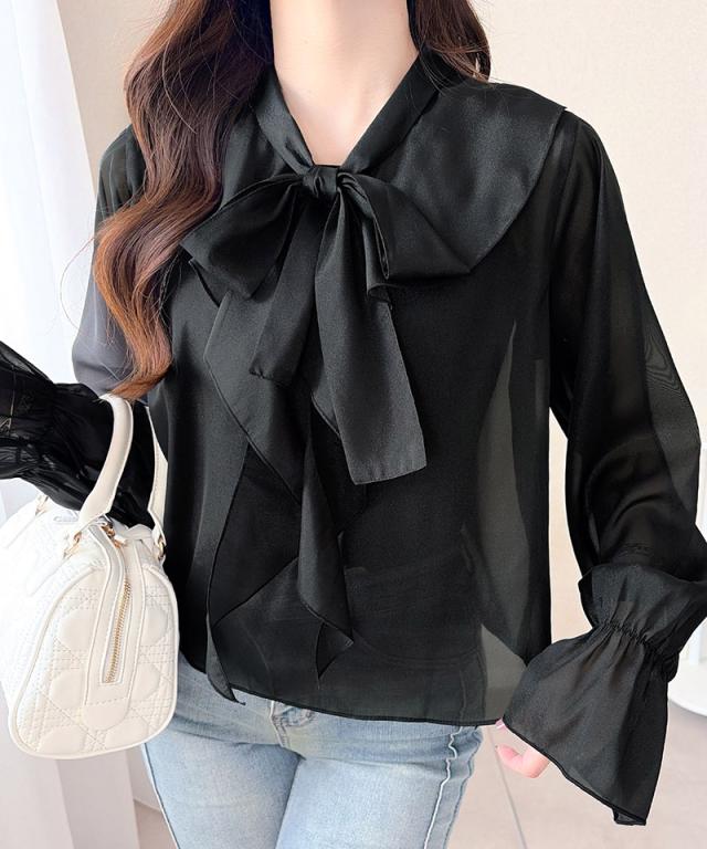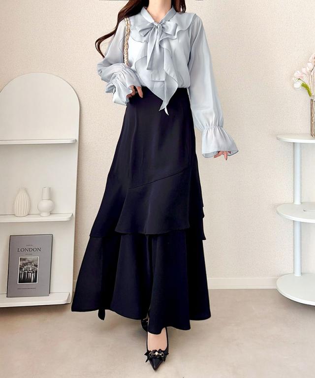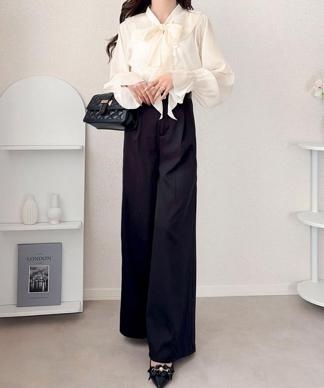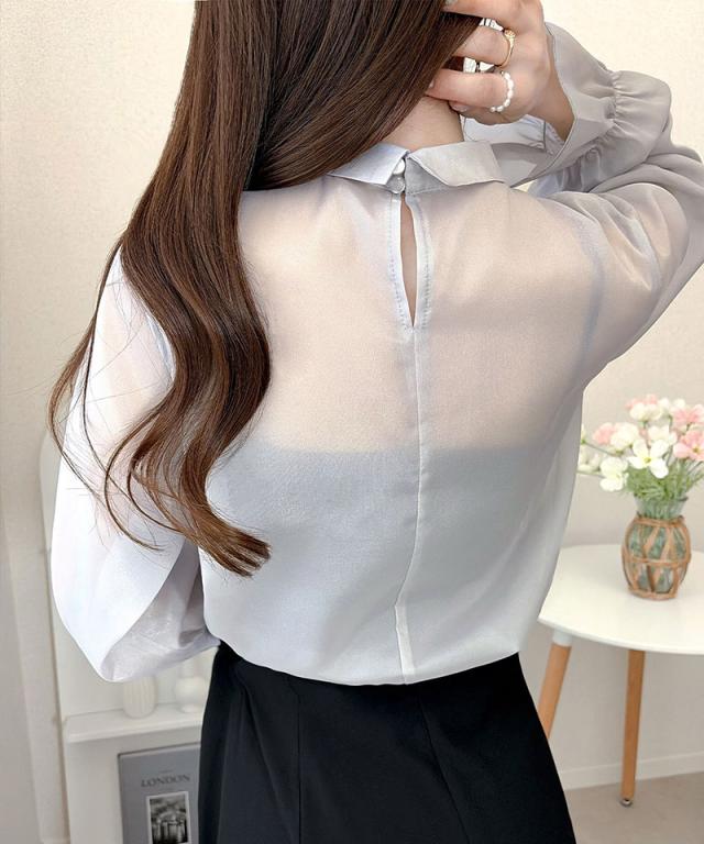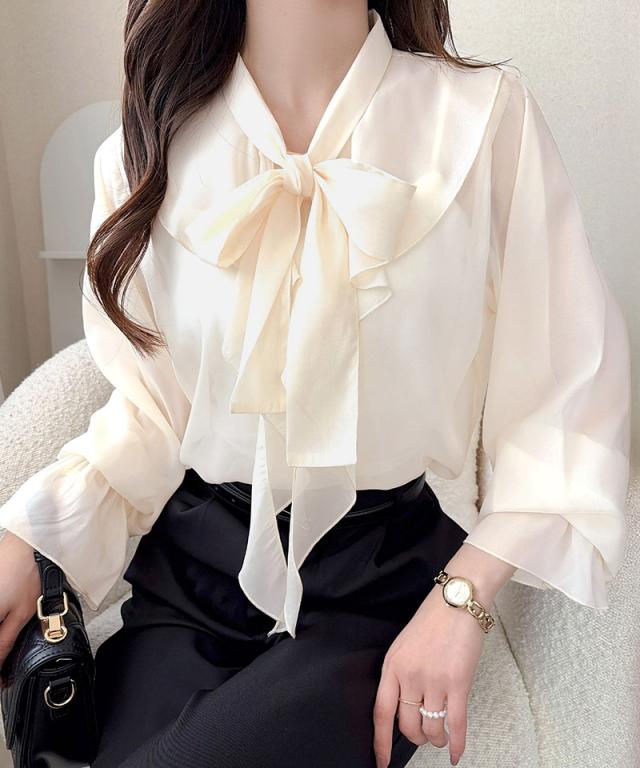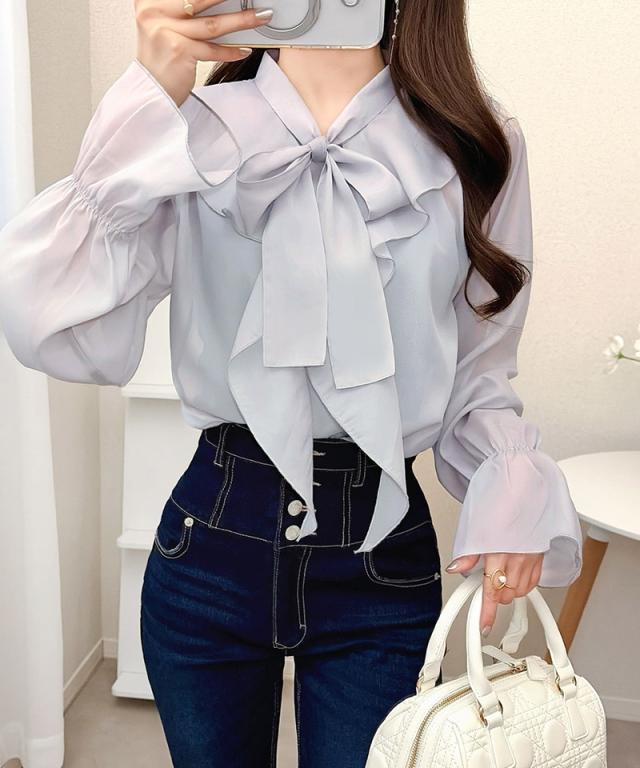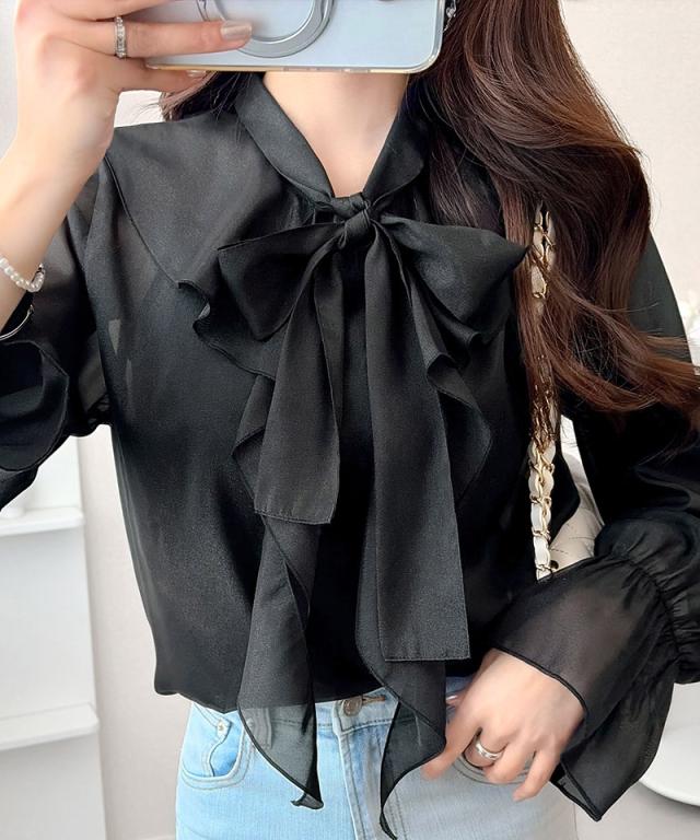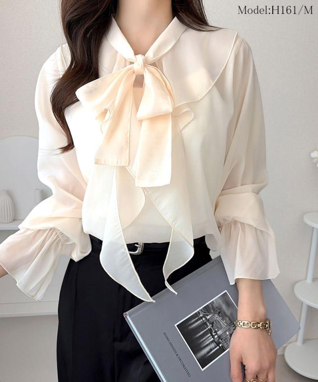 クラシカルエルフ夏新作 mily bilet トップス ブラウス レディース ボウタイリボン シャイニーシアー 上品 透け感 ラメ フリルデザイン 華やか 大人可愛い オーガンジー素材 軽やか キャンディースリーブ オンオフ 高見え 大きいサイズ 黒 白 2026ss mi1359030