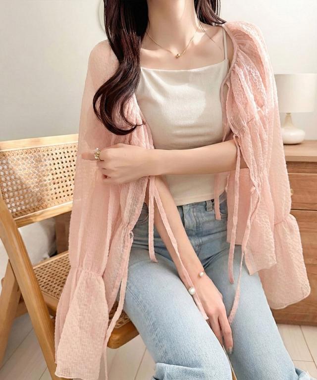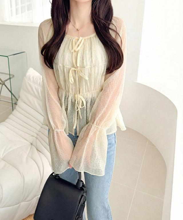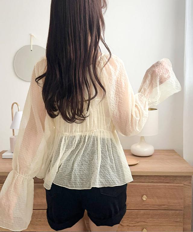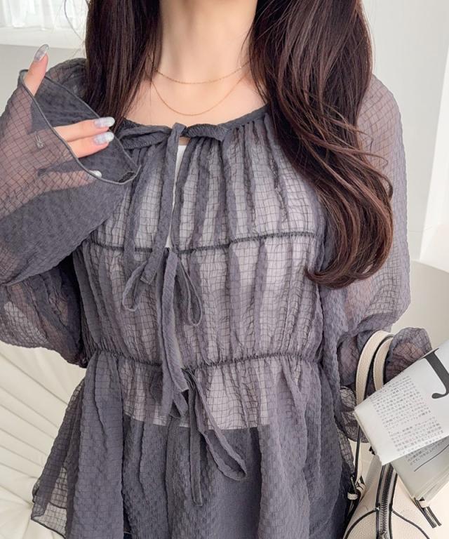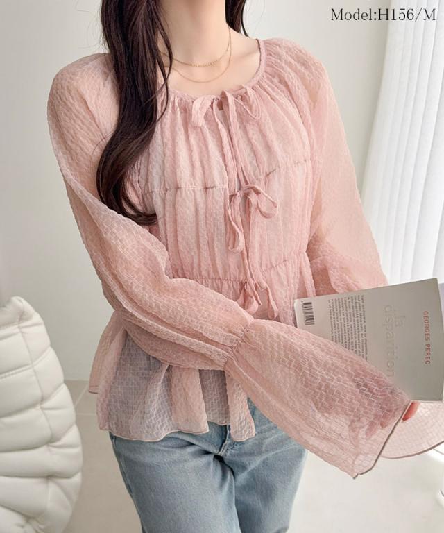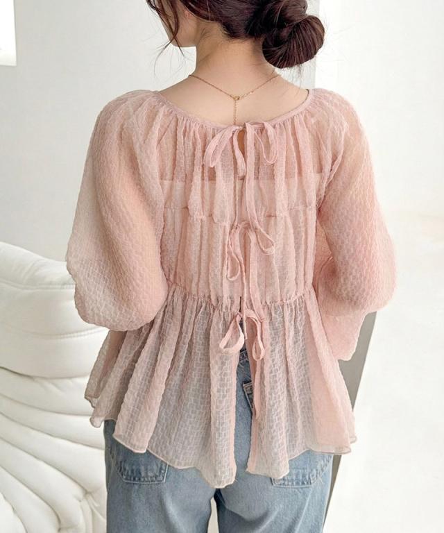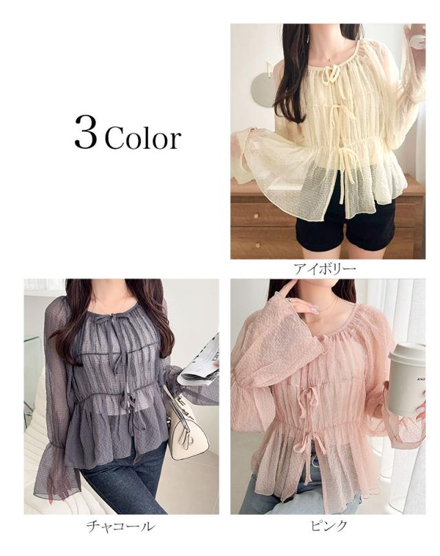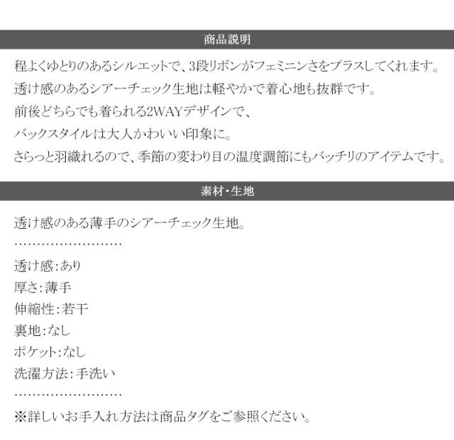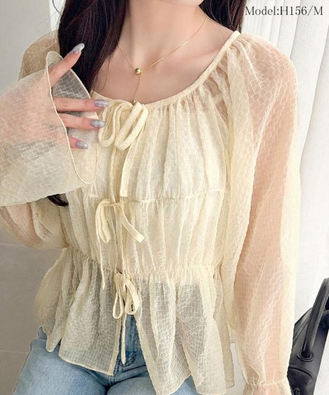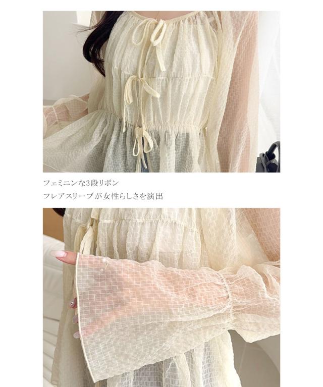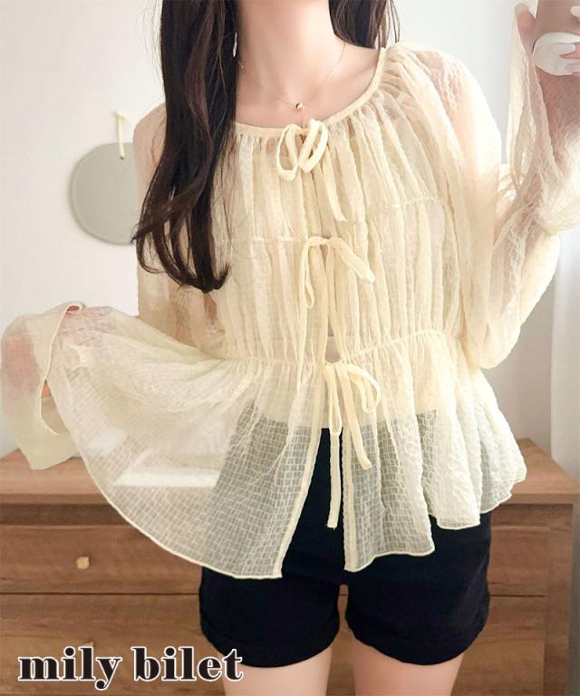 クラシカルエルフ夏新作 mily bilet トップス ブラウス レディース シアー 前後2way 軽やか 華やか 透け感 3段リボン ゆとり フェミニン 大人かわいい カーデ お洒落 大きいサイズ 白 2026ss mi1359032
