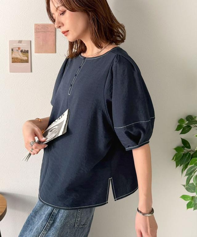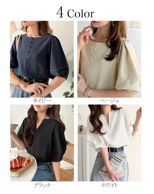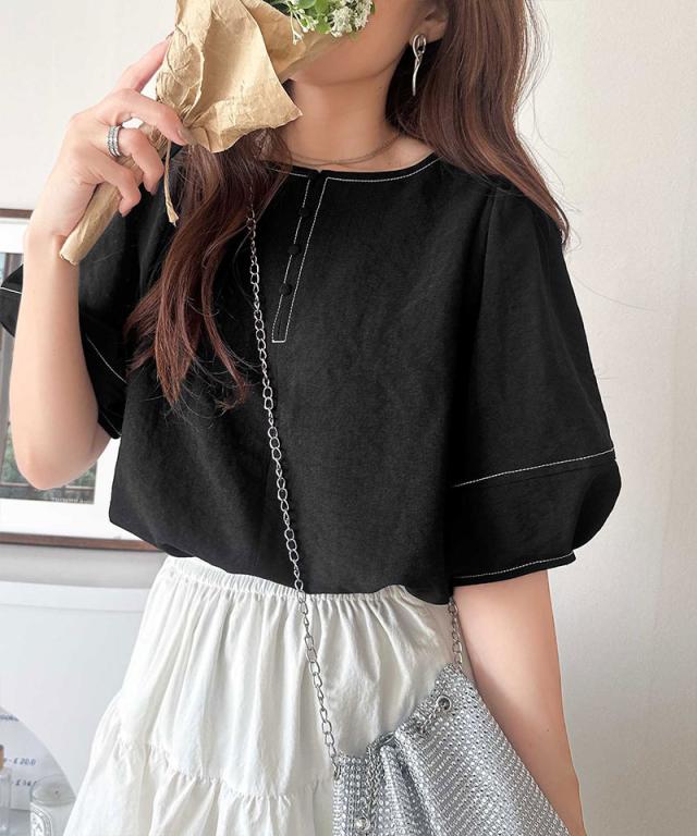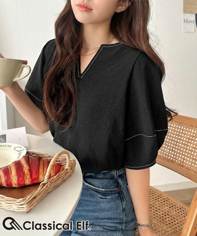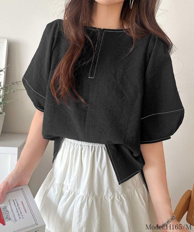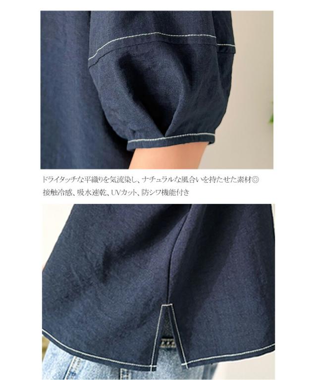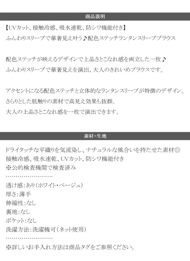 クラシカルエルフ夏新作 UVカット、接触冷感、吸水速乾、防シワ機能付き トップス シャツ レディース配色ステッチランタンスリーブ ブラウス 大きいサイズ 黒 白 2026ss ce1265053
