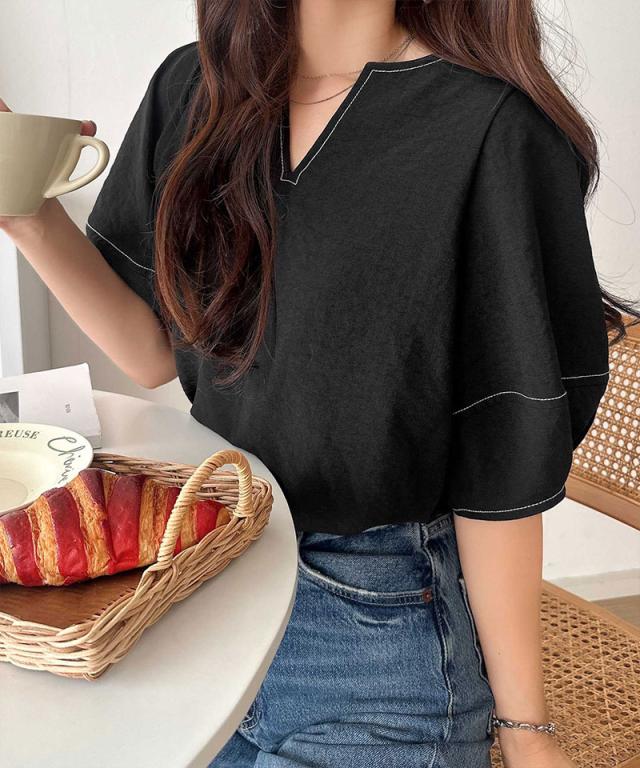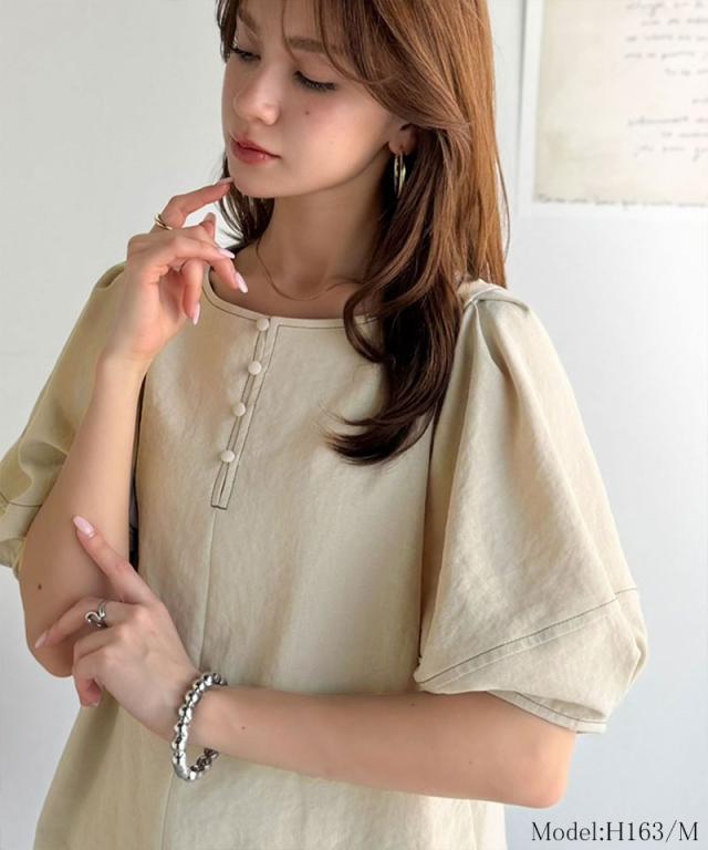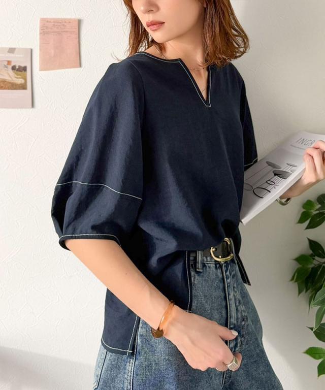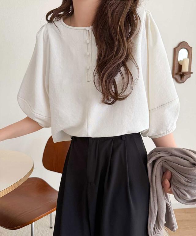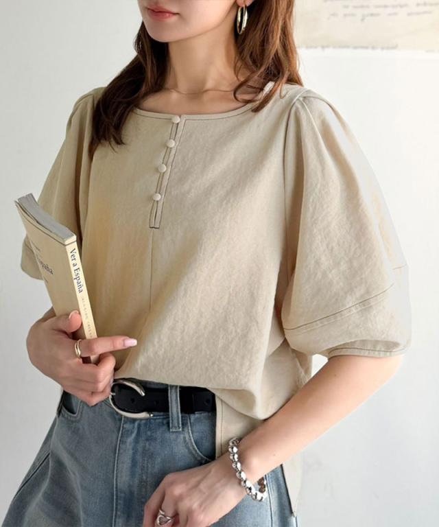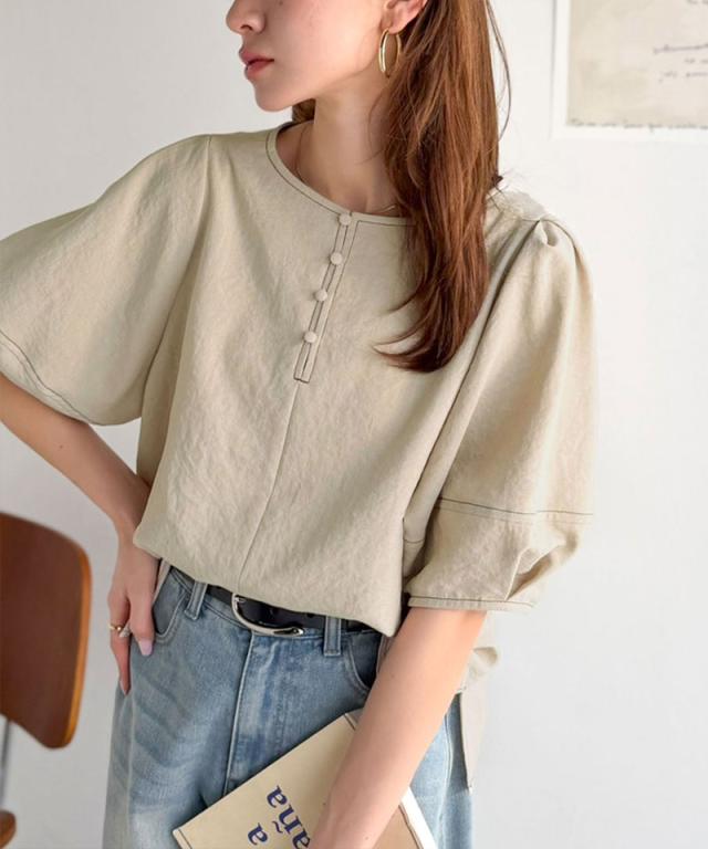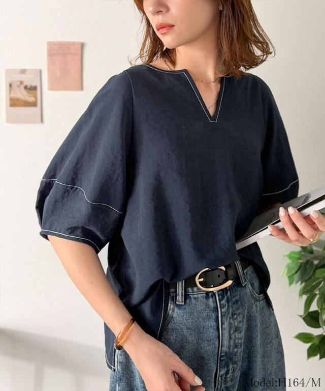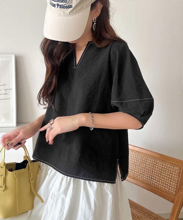 クラシカルエルフ夏新作 UVカット、接触冷感、吸水速乾、防シワ機能付き トップス シャツ レディース配色ステッチランタンスリーブ ブラウス 大きいサイズ 黒 白 2026ss ce1265053
