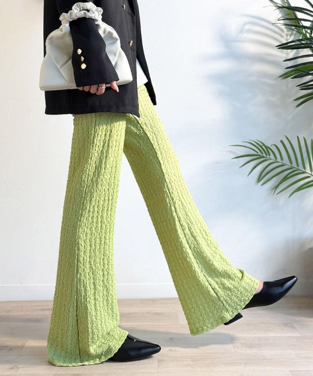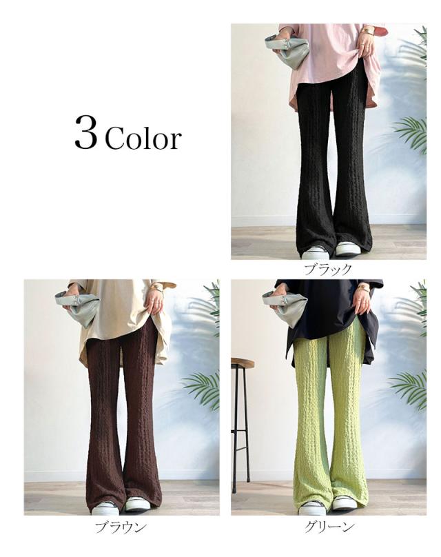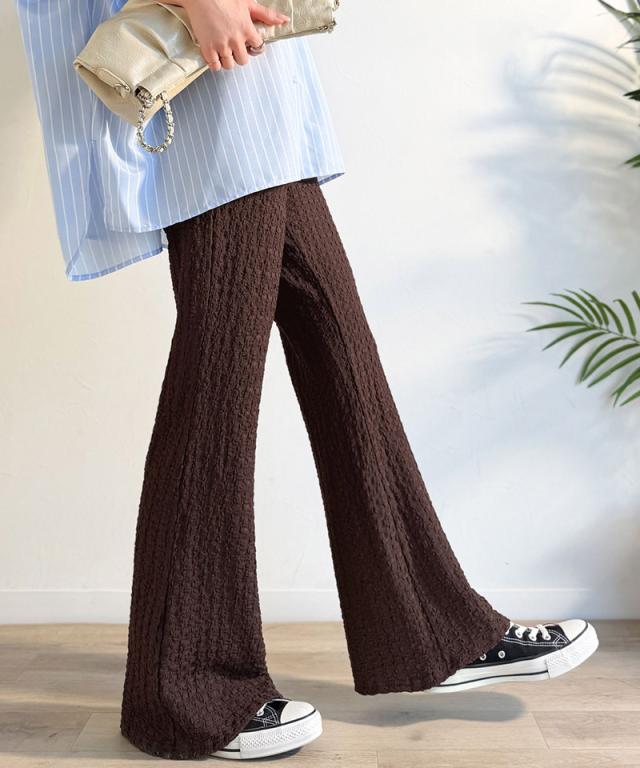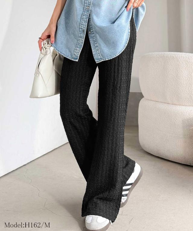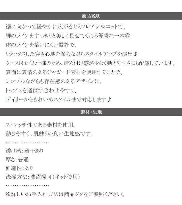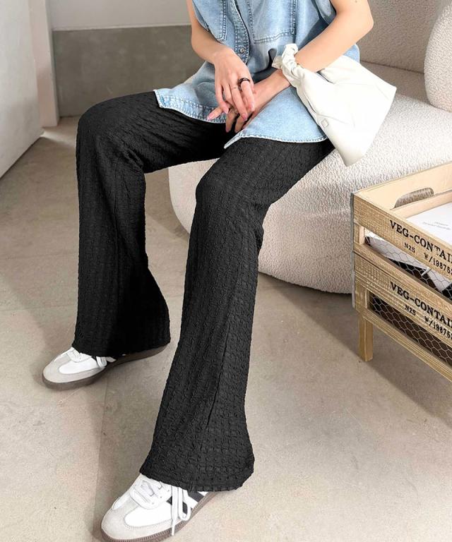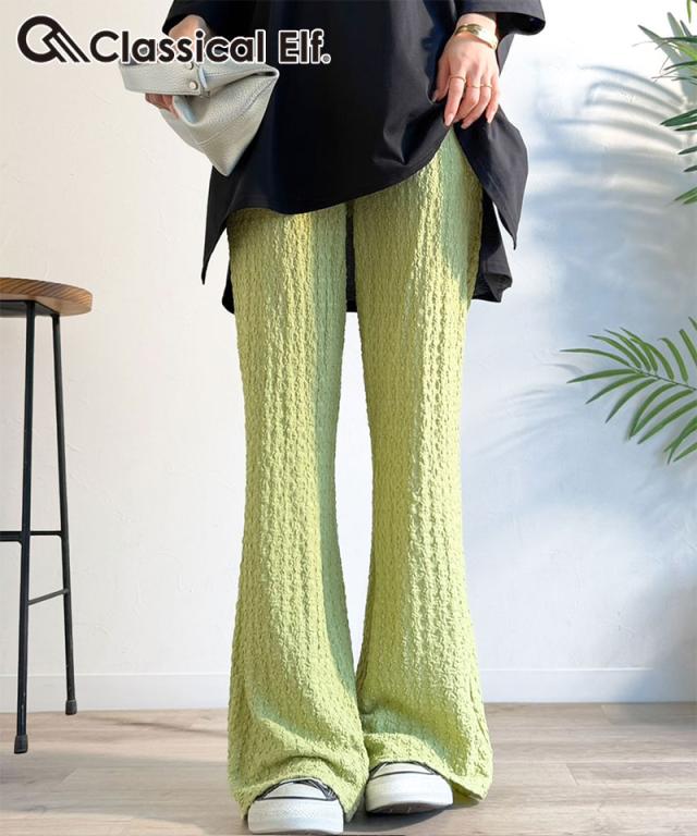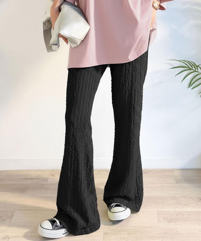 クラシカルエルフ夏新作 ボトムス パンツ レディース ジャガード セミフレアパンツ 上品 美脚見え ウエストゴム仕様 立体感 ストレスフリー ジャガード生地 大きいサイズ 黒 2026ss ce1015100