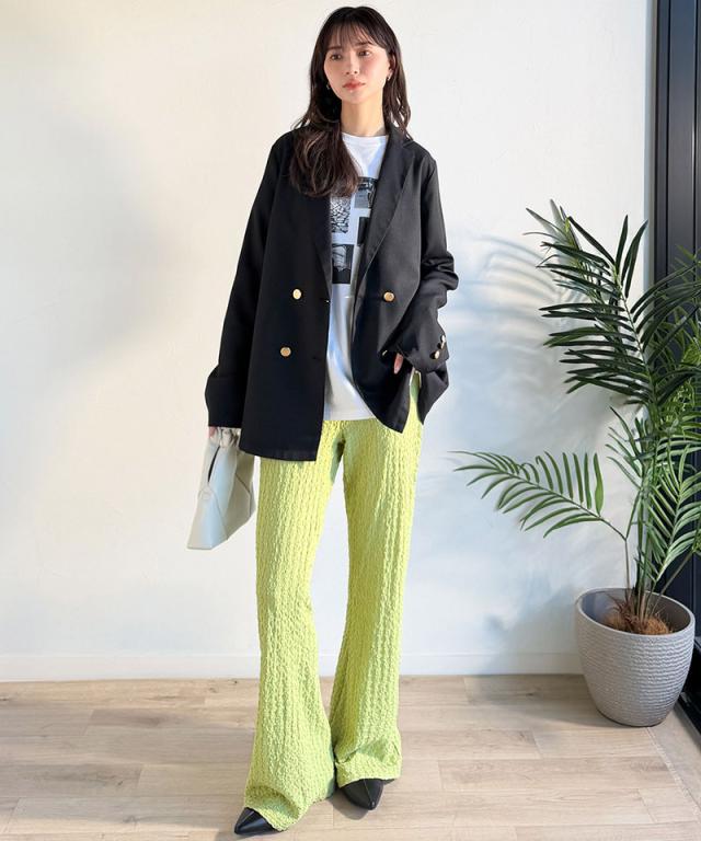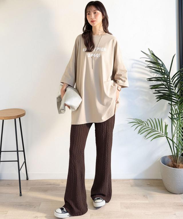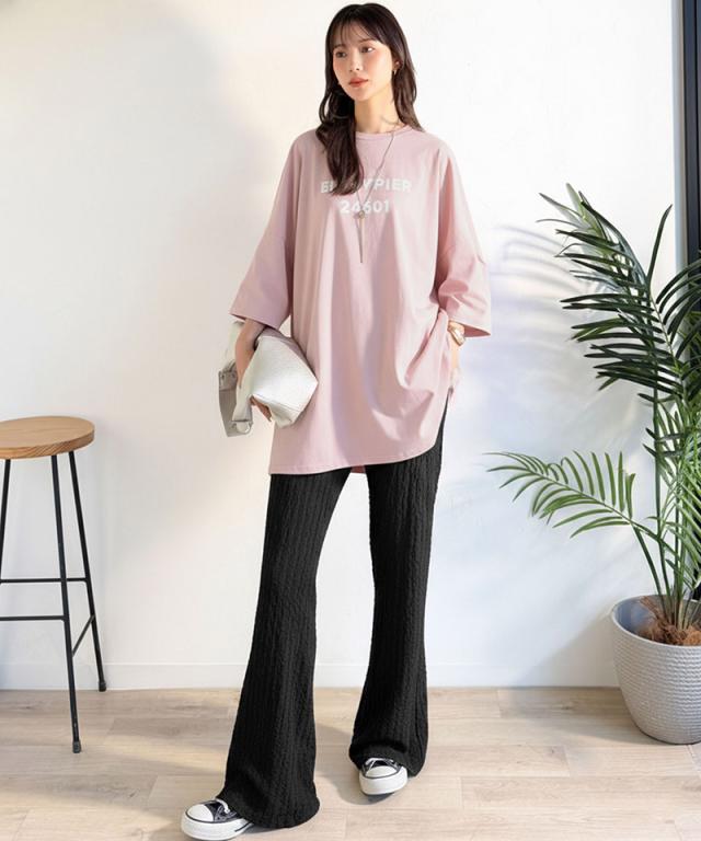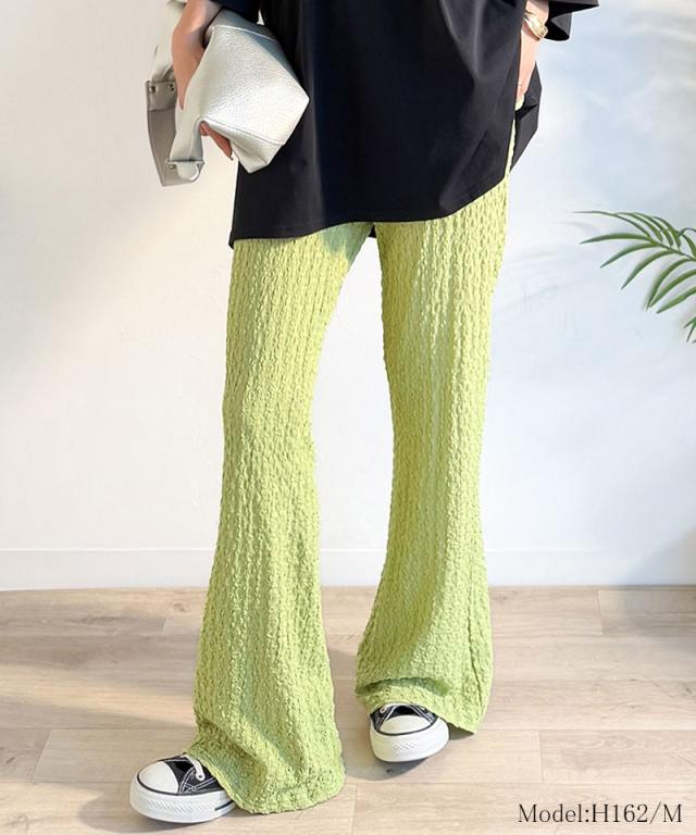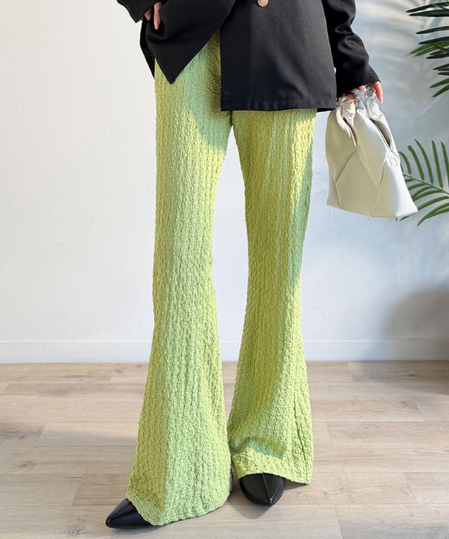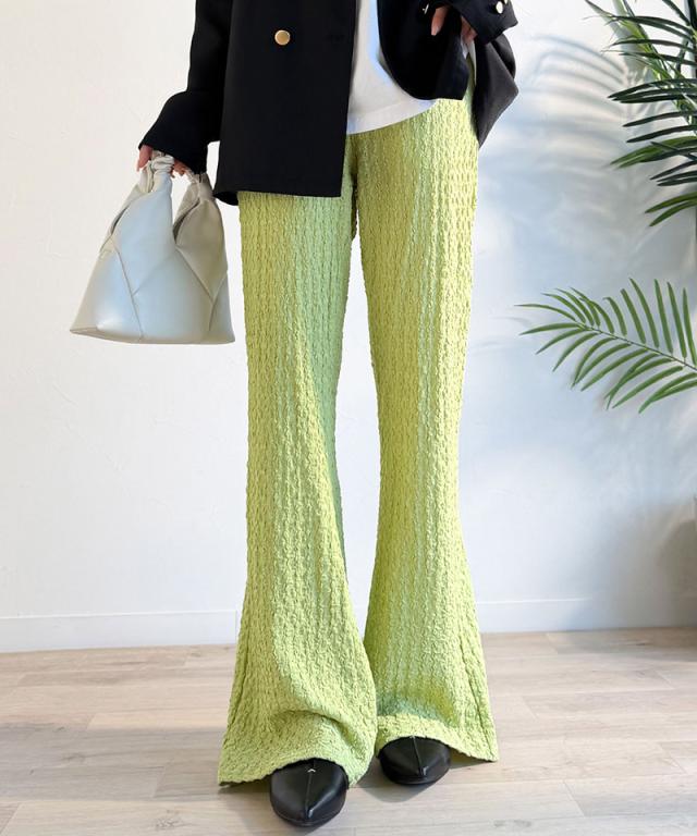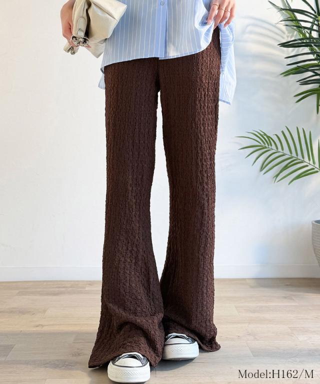 クラシカルエルフ夏新作 ボトムス パンツ レディース ジャガード セミフレアパンツ 上品 美脚見え ウエストゴム仕様 立体感 ストレスフリー ジャガード生地 大きいサイズ 黒 2026ss ce1015100