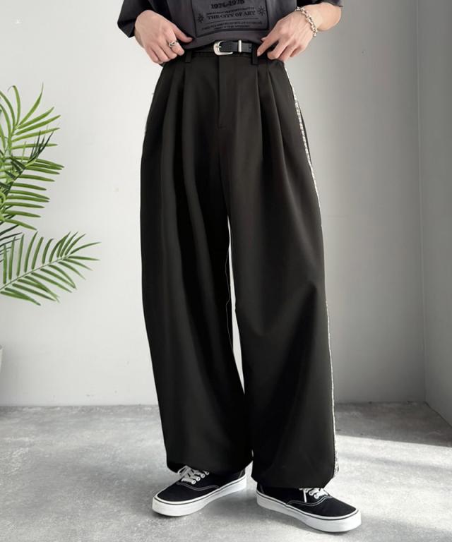 クラシカルエルフ夏新作 java ジャバコラボ ボトムス パンツ メンズ ツータックスラックス 立体感 上品 カジュアル きれいめ 男女兼用 ワイドパンツ オールシーズン 大きいサイズ 黒 2026ss jo0780021