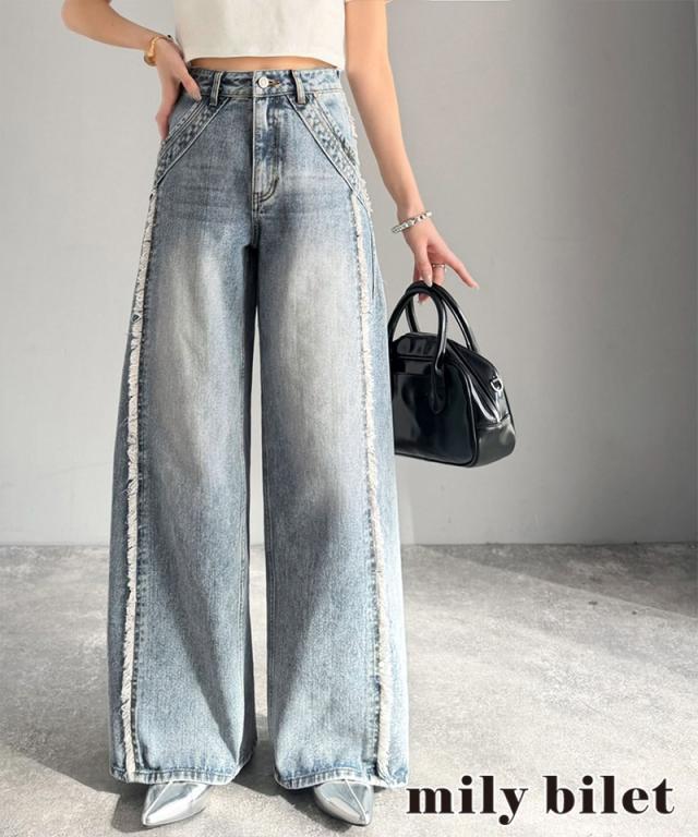 クラシカルエルフ夏新作 mily bilet ボトムス パンツ レディース デニム ワイドパンツ ストレートパンツ 美脚デニム 主役級 ハイウエスト 脚長効果 大人可愛い 大きいサイズ 2026ss mi0909023