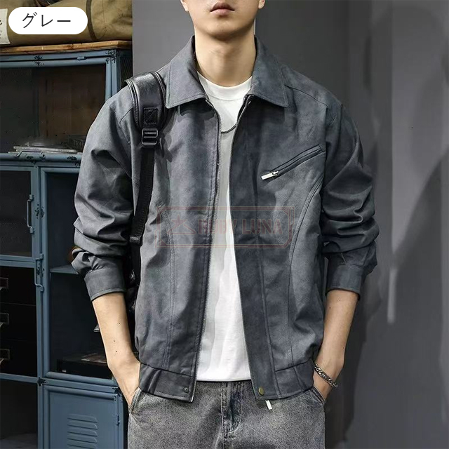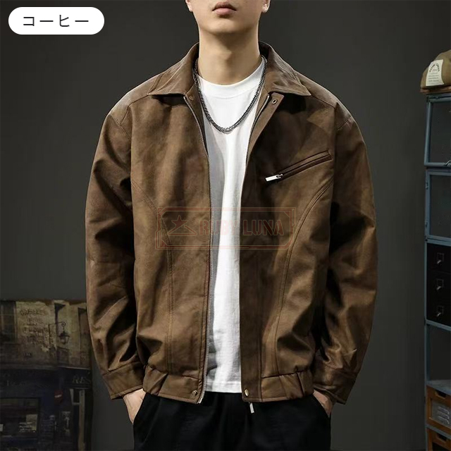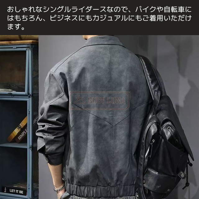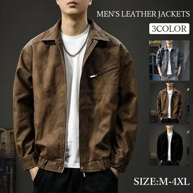 安挑戦 春新作 送料無料 新作 ライダースジャケット メンズ レザージャケット 折襟 春 秋 ダメージ加工 ワークウェア PUレザージャケット ビンテージスタイル フェイクレザー ショート丈 バイクジャケット 細身 スリム 皮ジャン