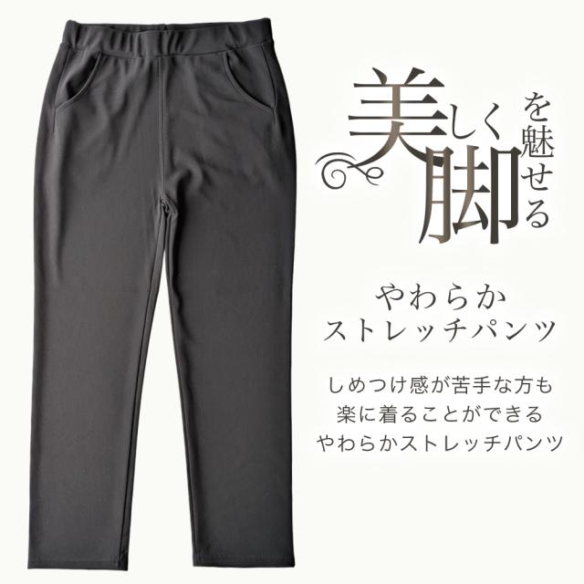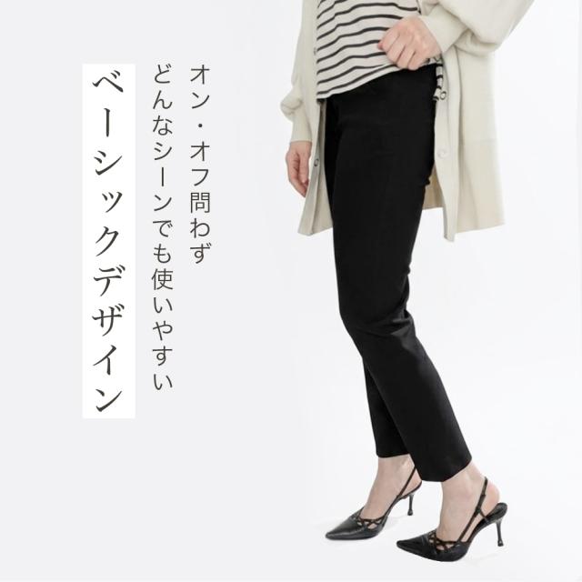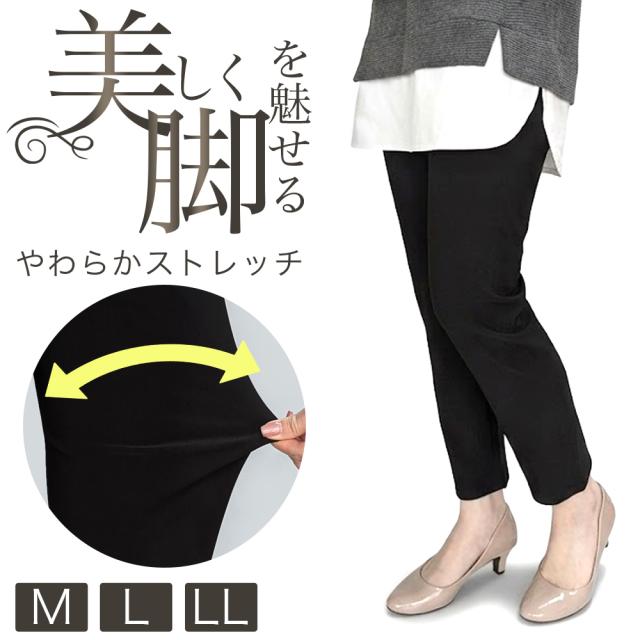 ストレッチ 美脚 パンツ レディース テーパードパンツ ボトムス ズボン ポケット付 黒 オフィスカジュアル オフィス きれいめ
