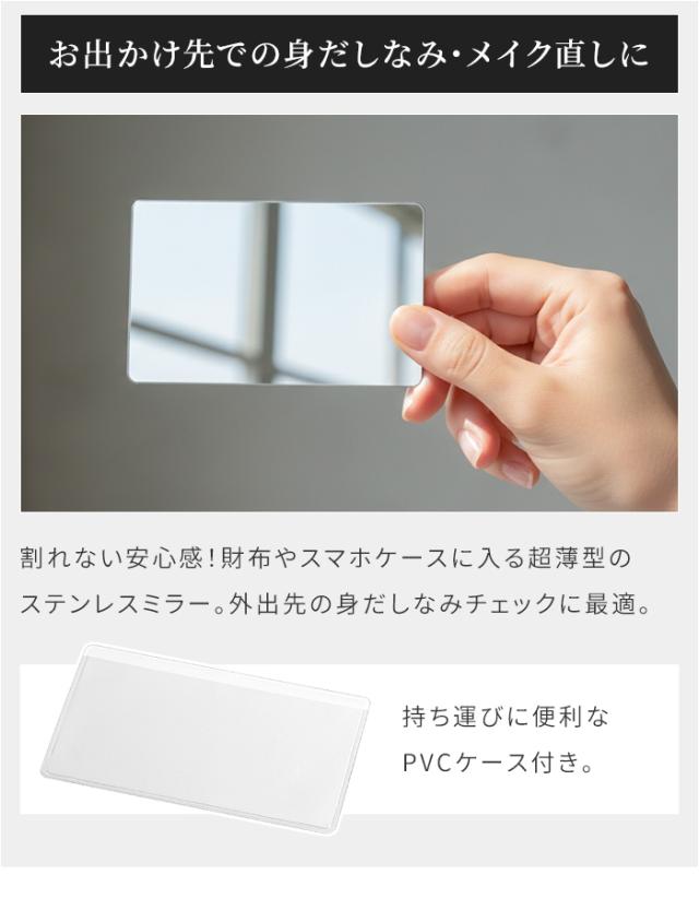 鏡 カードミラー ステンレス 日本製 燕 燕三条 薄型 携帯用 ケース付き ポケットミラー カードサイズ ミニミラー 軽量 コンパクト かがみ 身だしなみ ビジネス 学生 外出 旅行 メンズ レディース 新生活 一人暮らし