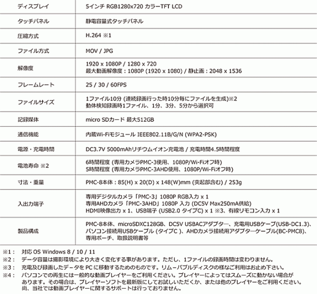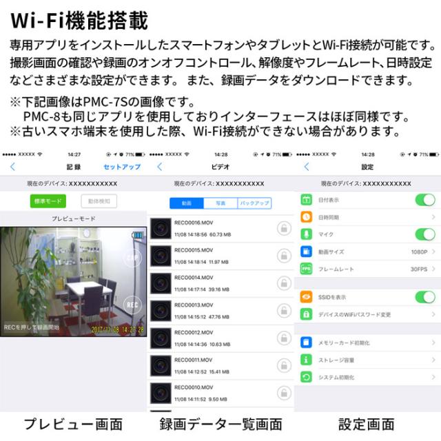 PMC-8 | Wi-Fi機能搭載 AHD対応 特殊監視用レコ−ダ−【サンメカトロニクス】【小型カメラ】