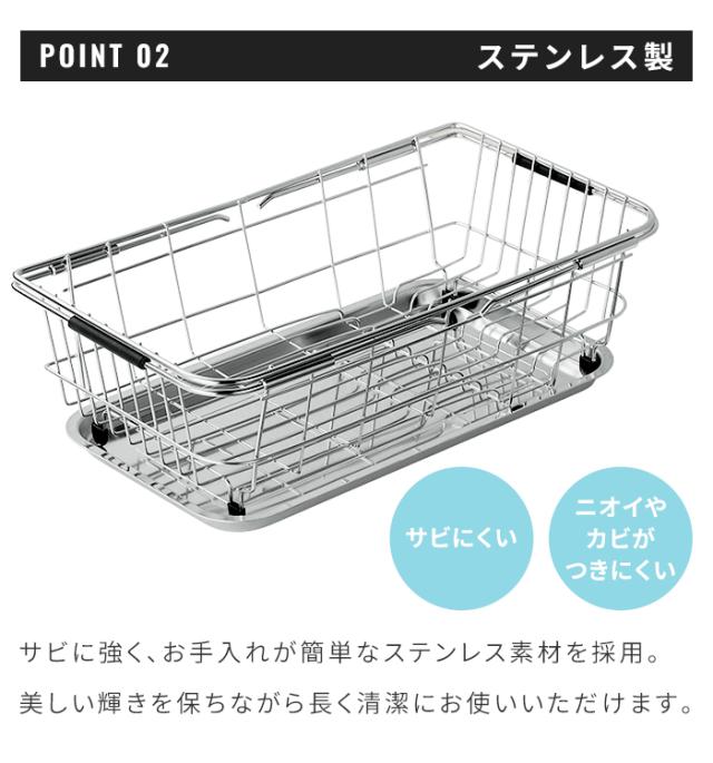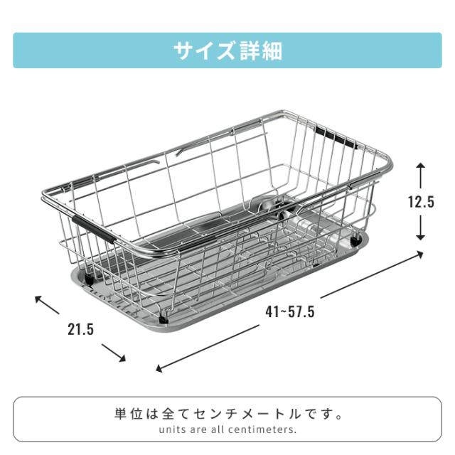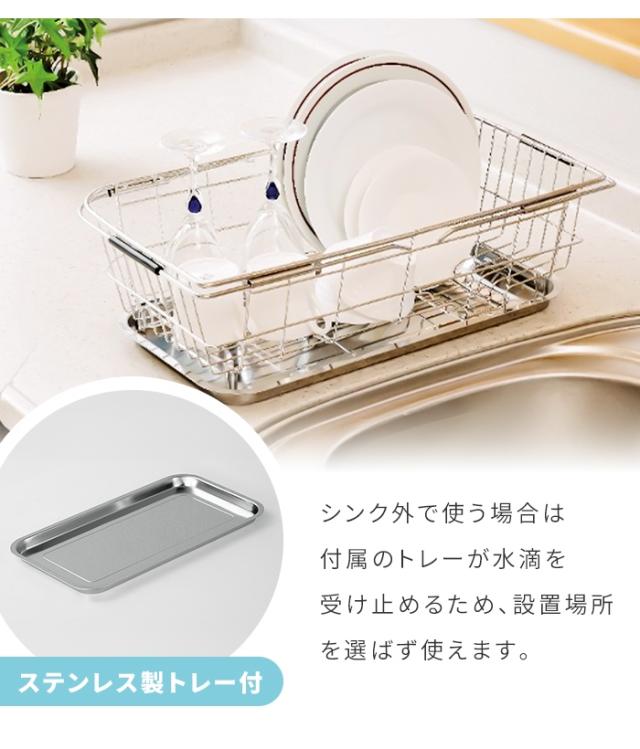 キーワード: 水切りかご 水切りカゴ 伸縮 伸縮式 スライド 伸びるトレー付き 水切り籠 水切りラック 水切りバスケット サイズ調整 サイズ調節 調整可能 可動式 シンク掛け シンク用 シンク内 シンク上 シンク渡し ステンレス ステンレス製 コンパクト 小型 省スペース ミニ 食器水切り 食器 皿 コップ 洗い物 キッチン キッチン用品 キッチン収納 台所用品 一人用 一人暮らし 単身 新生活 サブ用