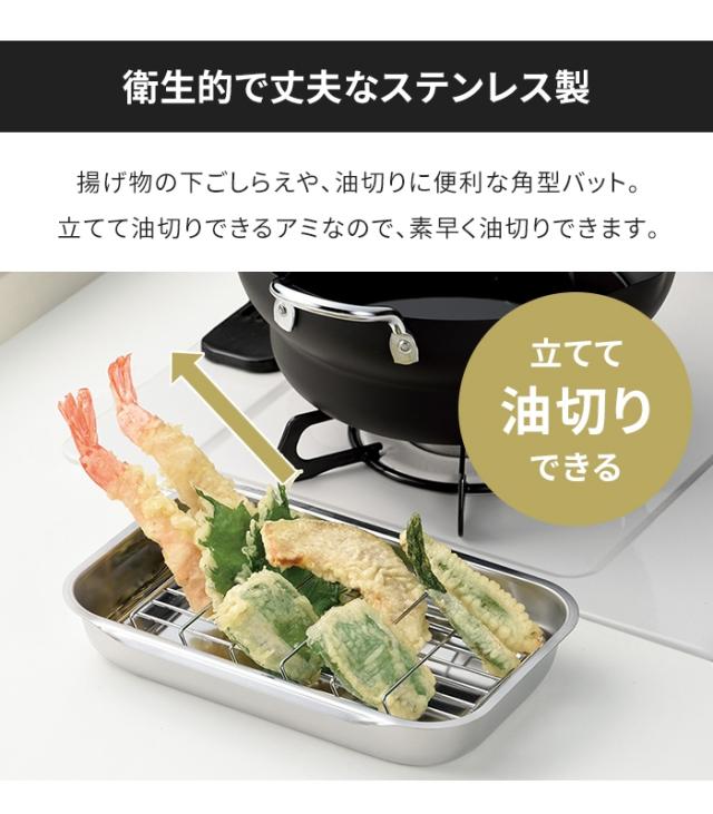揚げ物はもちろん、下ごしらえや調理用バットとして幅広く活躍します。