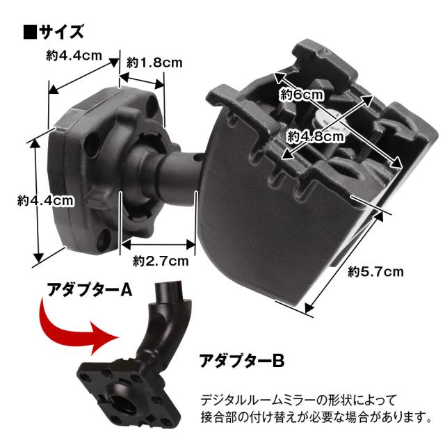 ※取り付けるデジタルルームミラーの形状により接合部の付け替えが必要な場合があります。