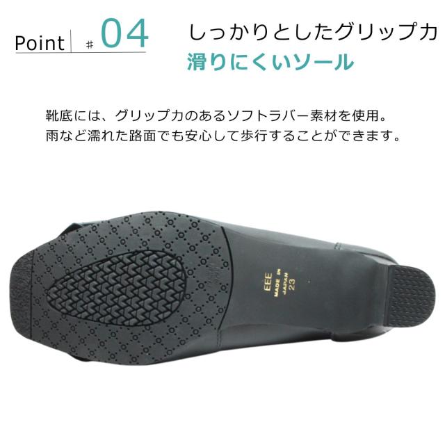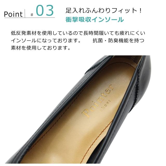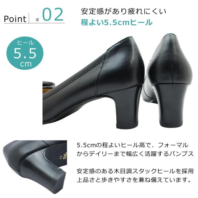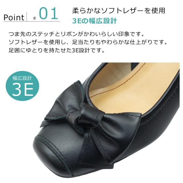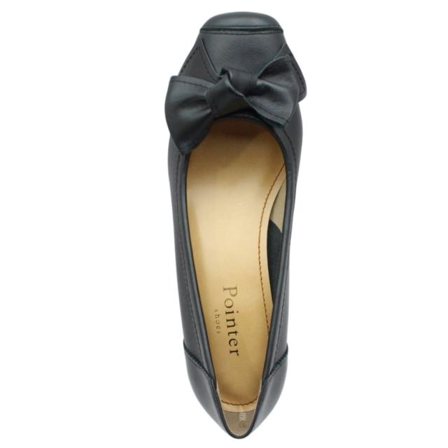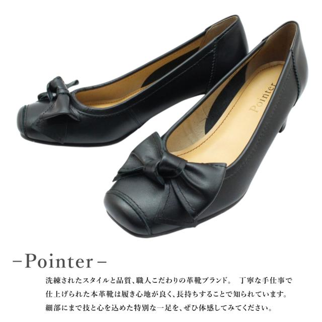 Pointer ポインター レディース レザー パンプス リボンデザイン 2330 スクエア 5.5cmヒール 3E 本革 ブラック 日本製