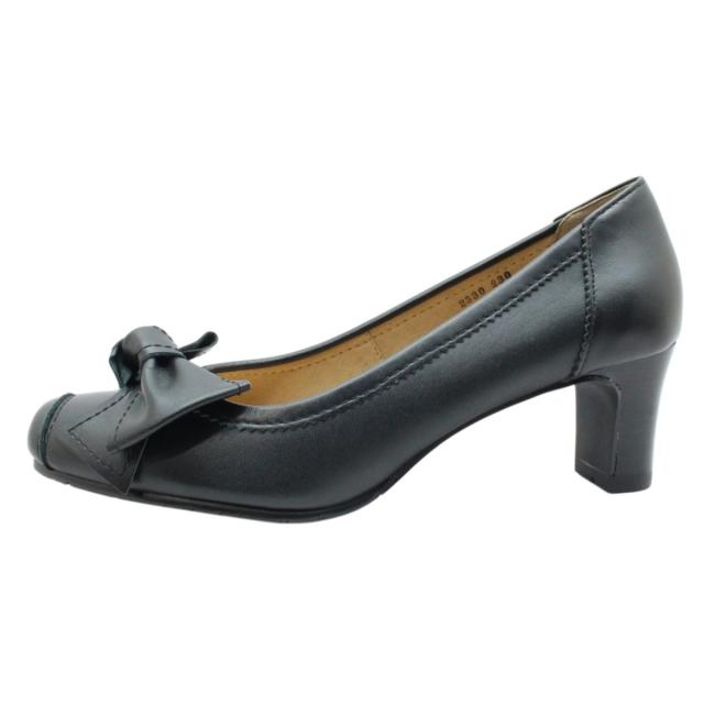 | Pointer ポインター レディース レザー パンプス リボンデザイン 2330 スクエア 5.5cmヒール 3E 本革 ブラック 日本製 |