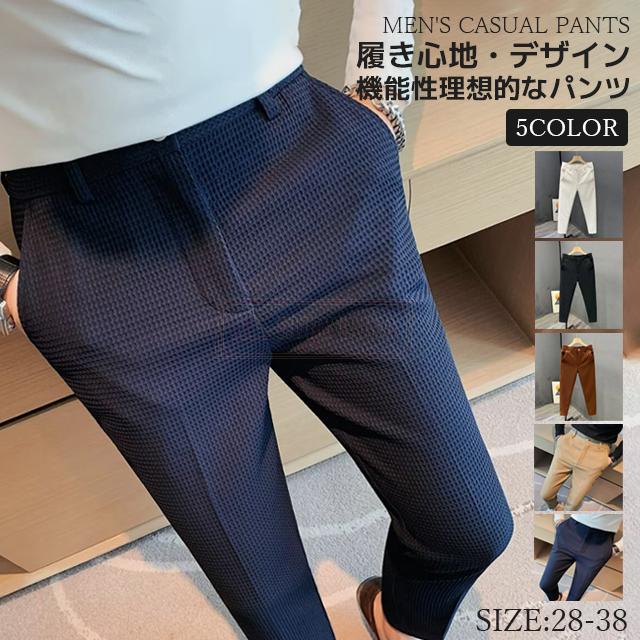 最安挑戦 冬新作 送料無料 新作 カジュアルパンツ メンズ スラックス ビジネス ワッフルパンツ 春夏秋 ストレートパンツ シンプル スリムフィット ボトムス かっこいい 伸縮性 紳士服 ワッフル生地 凹凸感 ウエストズボン 男性用 オシャレ