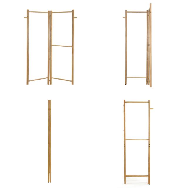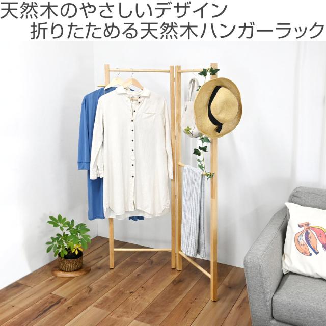 天然木のやさしいデザイン 折りたためる天然木ハンガーラック