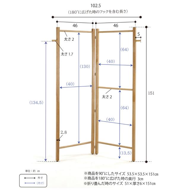 | サイズ | 約 幅53.5×奥行53.5×高さ151(cm) 折りたたみ時のサイズ:約 幅51×厚さ6×高さ151(cm) |