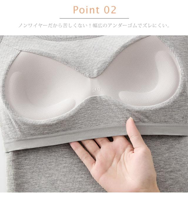 ノンワイヤーだから苦しくない!幅広のアンダーゴムでズレにくい。