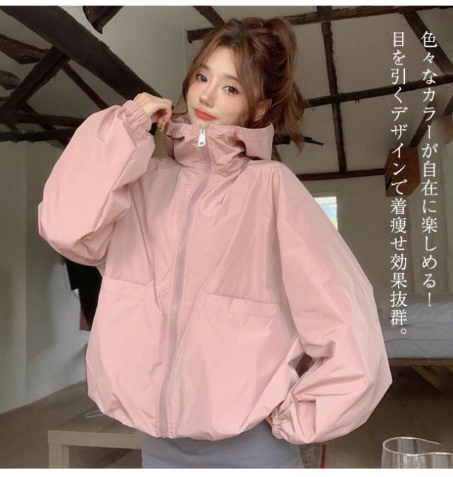 パーカー ジャケット レディース マウンテンパーカー ショート丈 カジュアル ルーズ 無地 ジップアップ 春 秋 夏 大きいサイズ 体型カバー