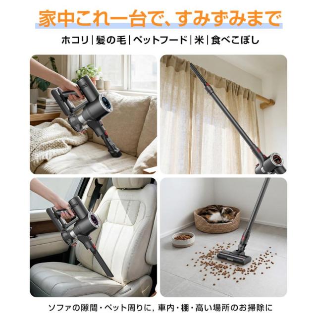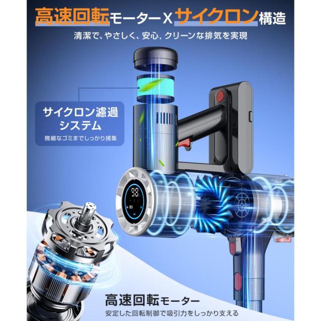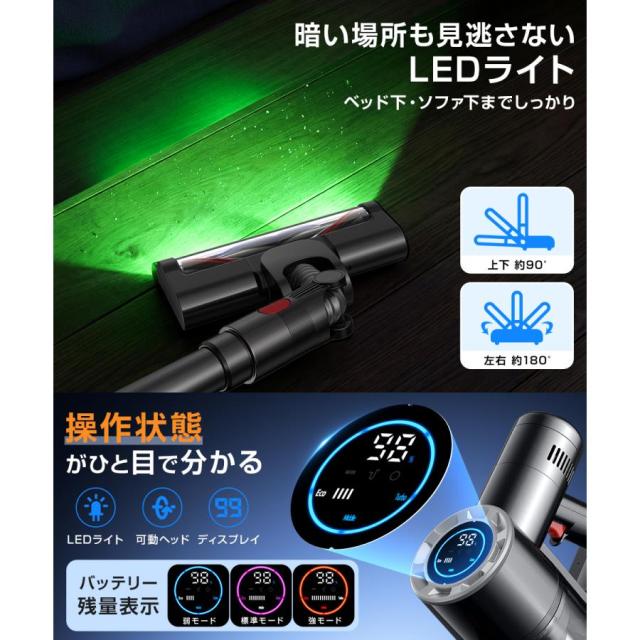 掃除機 コードレス パワフル吸引 コードレス掃除機 LEDライト 液晶ディスプレイ ハンディクリーナー サイクロン式 静音設計 軽量 超強力吸引 多機能 家庭用