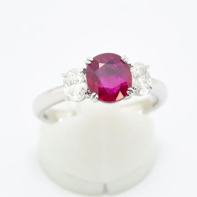 ルビー 1.61 ダイヤモンド 0.608 リング ビルマ産 PT900 約18号 新品磨き仕上げ 中古