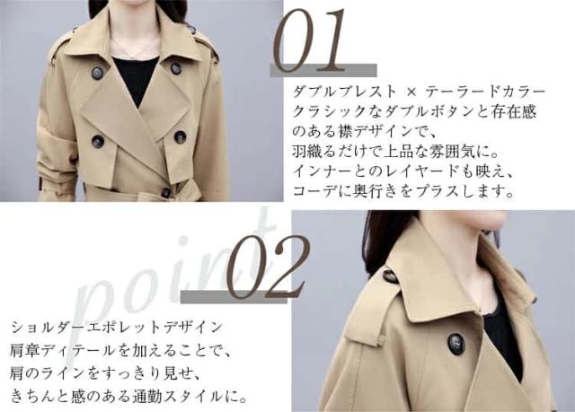 | 商品説明 | 圧倒的な存在感で、1枚着るだけで決まる本格的なロングトレンチコート ・程よいハリと光沢感、なめらかで高級感のある上品な素材 ・ガンパッチやエポレットを付けることで、より本格的なトレンチコートに ・裏地が付いてるのでストレスフリーかつ、防寒対策もバッチリ◎ ・ベルトは普通に通しても、結んでも、垂らしてもOK! ・スタンドネックやアシンメトリーなど、色んな着方で楽しめます! |