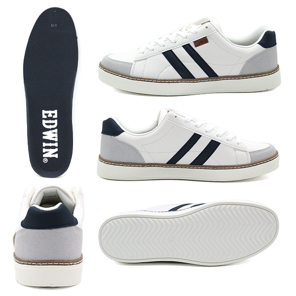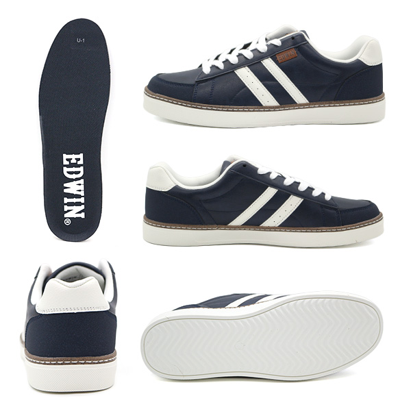 エドウィン スニーカー メンズ 靴 ネイビー ホワイト 白 カジュアル 疲れにくい 歩きやすい 履きやすい シンプル おしゃれ かっこいい オシャレ 通勤 通学 シューズ EDWIN EDW-7129