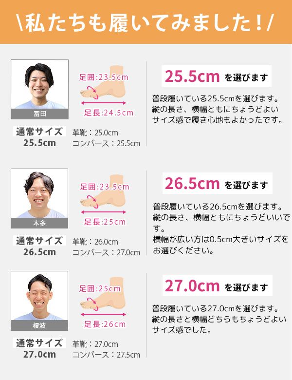取り扱いサイズ:25cm 25.5cm 26cm 26.5cm 27cm 28cm