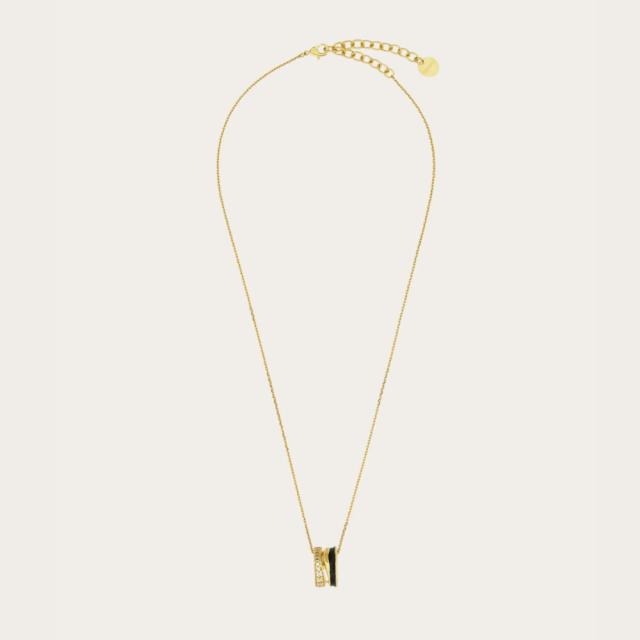 フェラガモ・FERRAGAMO NKL PLATEMER クリスタル×エナメル リング ネックレス・アクセサリー(ゴールド) 760926 790653/ORO*BLACK*CRYSTAL