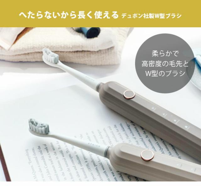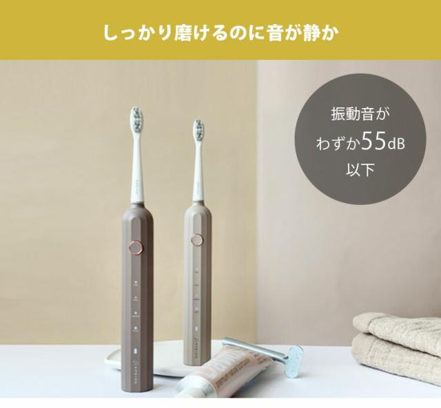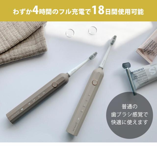 | 仕様 | ■セット内容: ・本体×1 ・専用歯ブラシヘッド×2 ・USB充電ケーブル×1 ・取扱い説明書×1 ■連続使用時間:180日間 ※1日2回、各2分間使用する場合 ■フル充電までのかかる時間:約4時間 ■動作音:55dB未満 ■防水性能:IPX7 ■ブラシヘッド:デュポン社製の柔らかく高密度なブラシ |